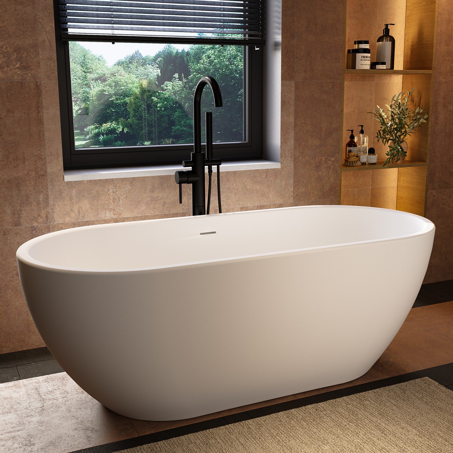 - The outside of the bath is finished in matt white, to create that focal point in your bathroom
