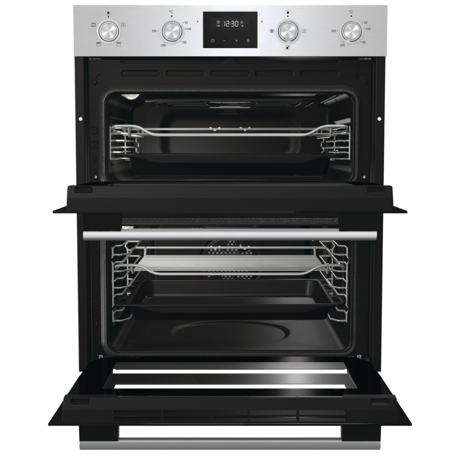 Enjoy tasty meals with this stainless steel-effect built-in double oven from Hisense. The main electric fan oven delivers even heat across all shelves, perfect for a Sunday roast or batch cooking. The second electric oven adds versatility with a grill setting that crisps up toppings beautifully. Plus, the timer function offers hassle-free cooking by turning the oven off automatically once your meal is ready. Grease-proof catalytic liners keep cleaning simple and stress-free.