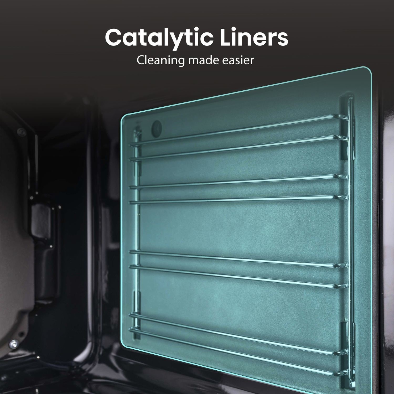 Keeping your cooker pristine is a breeze thanks to catalytic liners. These clever liners effortlessly prevent grease splashes from adhering to the cavity walls in the main oven, ensuring easy maintenance and a clear interior. Say goodbye to stubborn stains and hello to hassle-free cleaning.