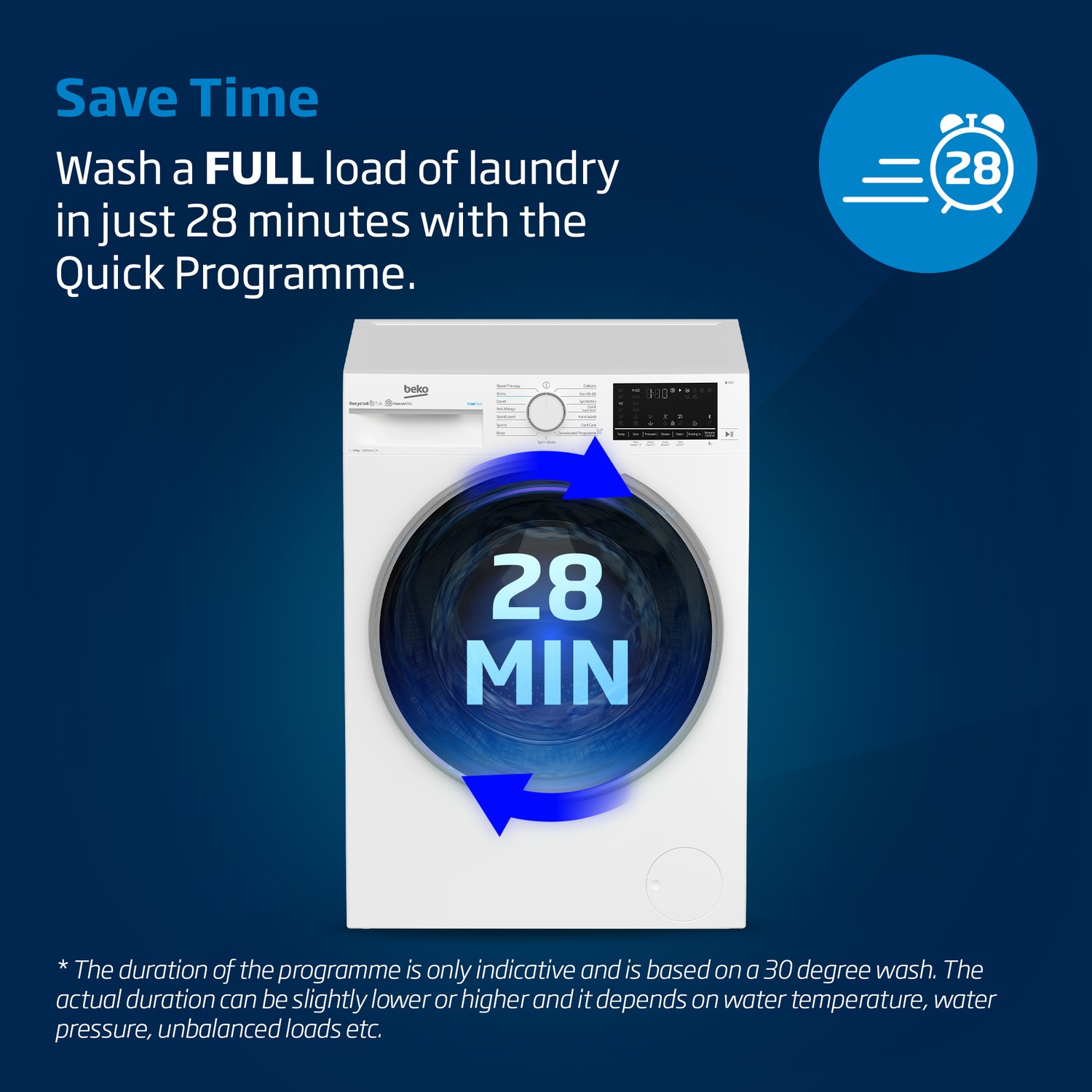 Laundry doesn’t have to take all day. The Quick programme lets you wash up to 9kg of laundry in just 28 minutes, ideal for busy households that need fresh clothes fast. Less time waiting, more time for everything else.