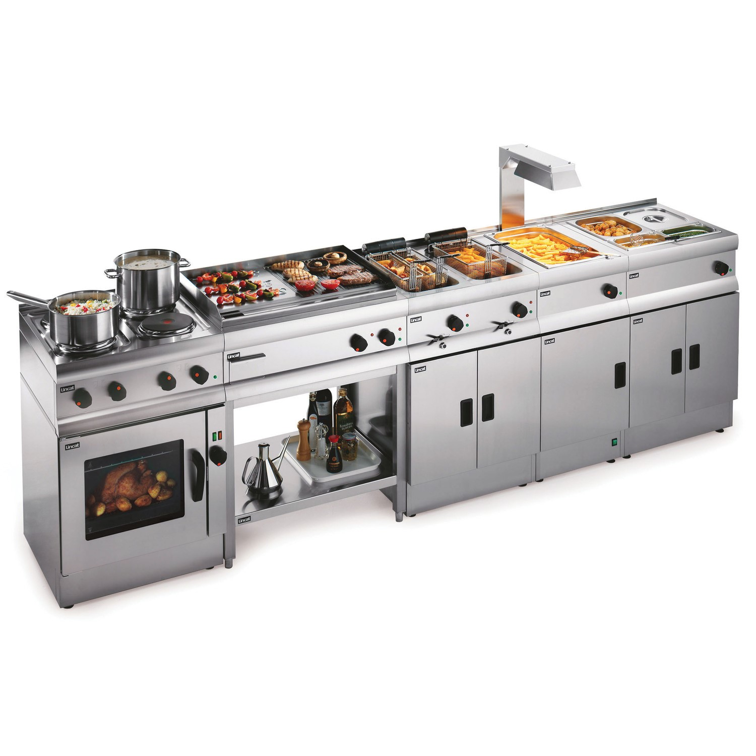 The wet heat system uses water to provide gentle, even heat distribution, helping maintain food moisture and texture throughout service. Its compact 400mm wide footprint makes it suitable for integration into Silverlink 600 cooking lines and countertop setups.