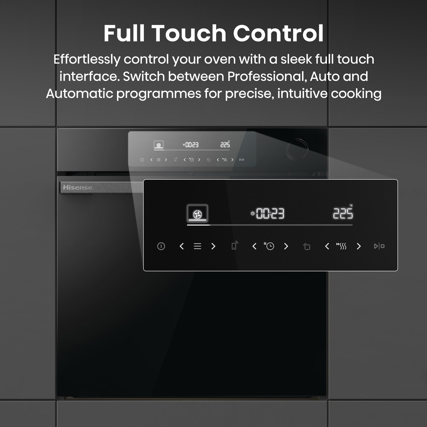 This extra large 77L capacity single oven comes packed with features including an air fry tray and a food probe. With Steam Add Plus you can also add steam to your cooking for crisp bakes and juicy tender roasts. The oven has a pyrolytic self cleaning function that burns away grease inside the oven leaving it spotless. This oven also comes with 22 automatic programmes; simply enter the weight and the oven will set the perfect cooking mode, temperature, and cooking time. The oven can also be connected to a WI-Fi network and controlled through the ConnectLife app.