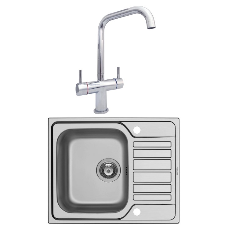 The Taylor & Moore Carter compact sink and tap set is the perfect blend of style and practicality with its sleek satin finish, modern design and compact size, allowing to fit in even the smallest of kitchens