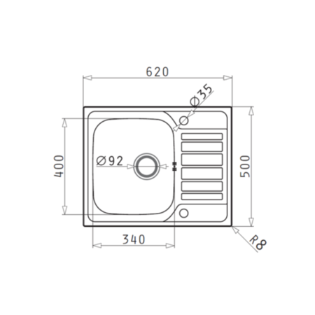 - Overall Sink Dimensions: W620 x D500 x H180mm