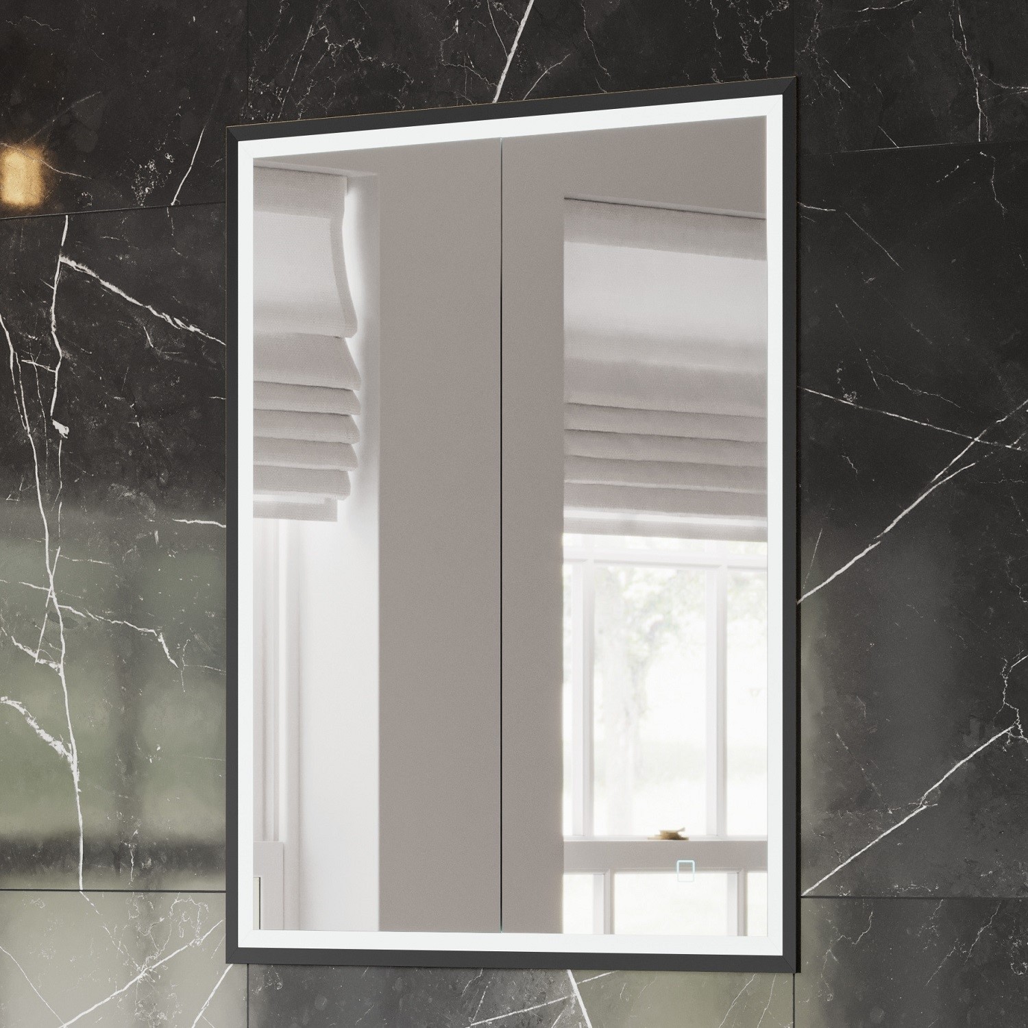 Enhance your bathroom space with this recessed LED mirror cabinet. It features an ambient glow around the edges thanks to the thin LED lighting. This large cabinet creates the illusion of space. Since the cabinet is recessed all of your bathroom essentials will be hidden. The cabinet features integrated charging points for razors and toothbrushes.