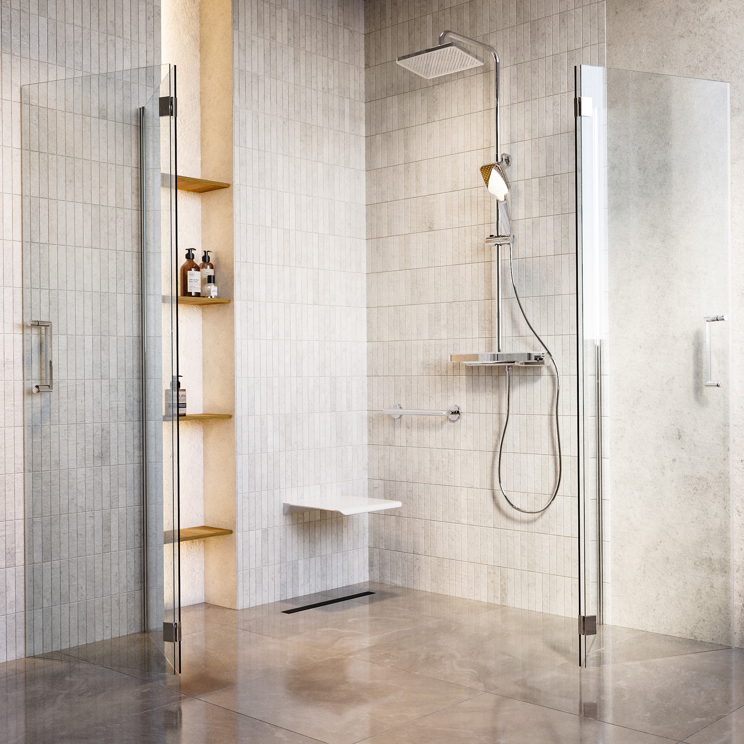 Fully Foldable Design: Folds completely flat against the wall when not in use, offering maximum space and flexibility in any wetroom.