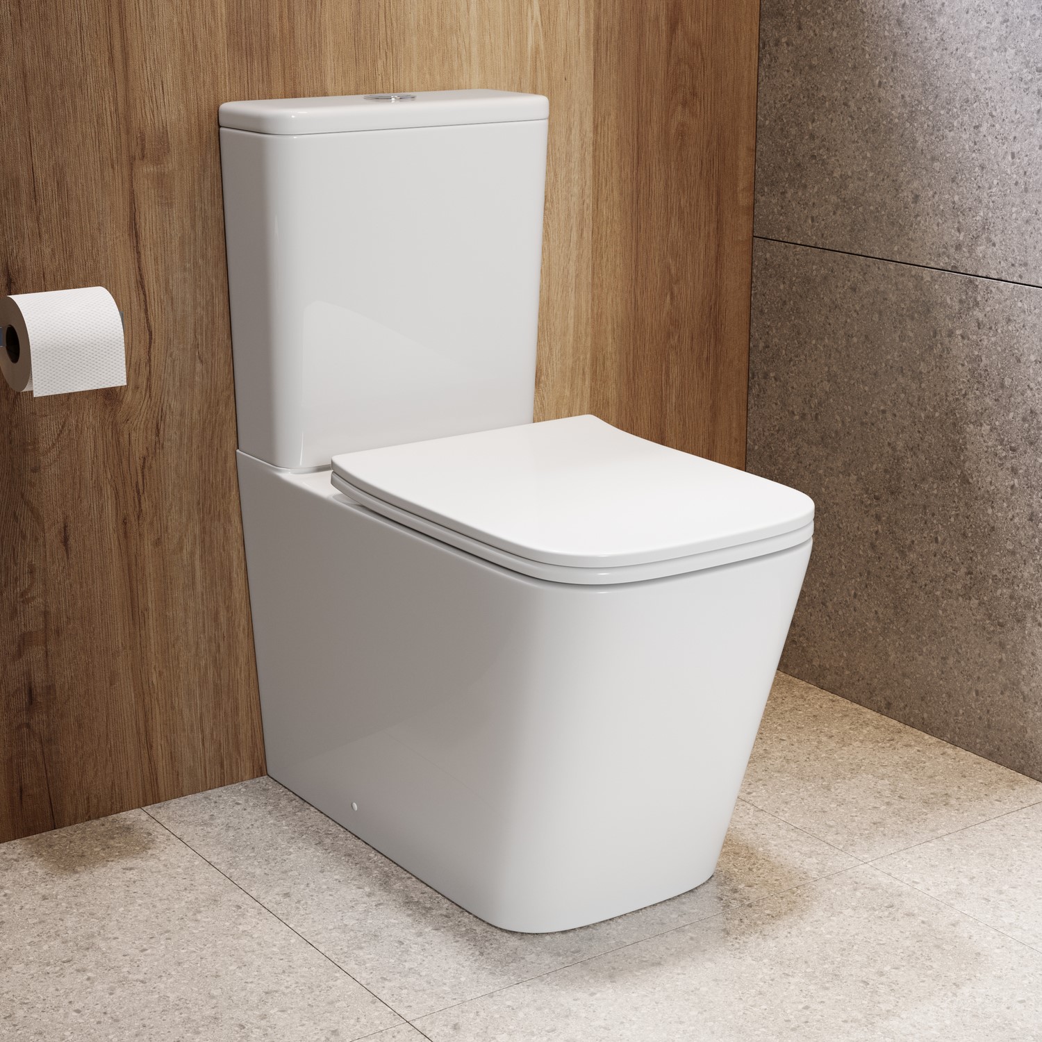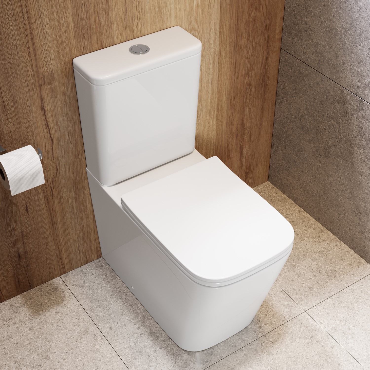 Sharp lines meet smart functionality in the Albi Close-Coupled Toilet – a modern essential for family bathrooms. With its angular square design and glossy ceramic finish, it’s the perfect fit for contemporary spaces. The rimless pan ensures superior cleanliness with every flush, while the closed-back style conceals pipework for a neat and minimalist look. A dual flush chrome button lets you choose between a 4L or 6L flush, helping to reduce water waste. Complete with a slimline soft-close seat made from acrylic, this toilet is built for lasting comfort and ease. The seat hinges are finished in white, so you can easily upgrade your flush button to your colour of choice to match your brassware theme.