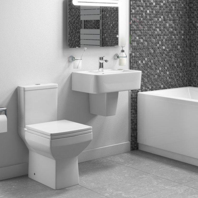 - The suite includes a close coupled toilet and a semi-pedestal sink that look great together