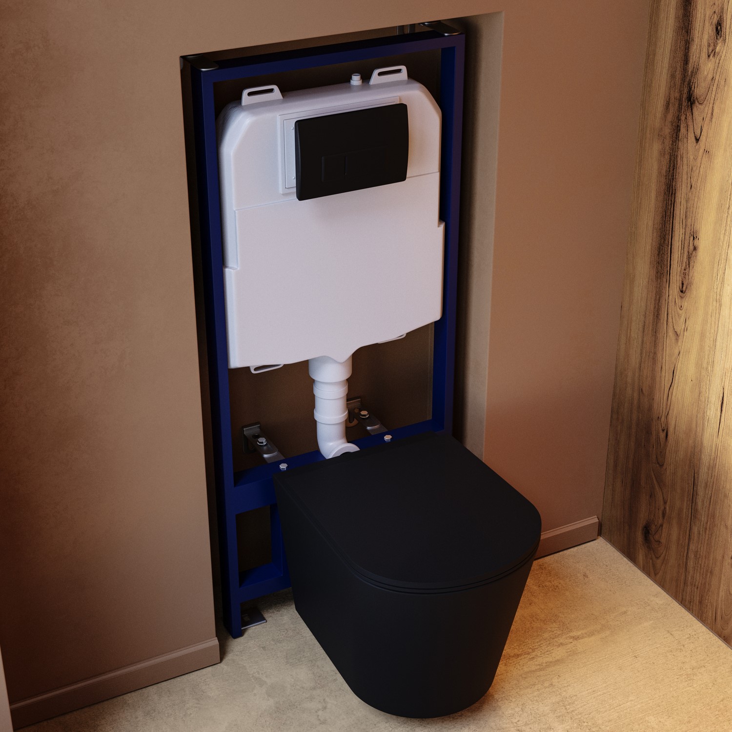 Wall-Hung Frame Design: Easy-to-install, space-saving frame that gives the toilet a floating look, perfect for compact bathrooms. It maximises space, making cleaning easier and providing a minimalist aesthetic.
