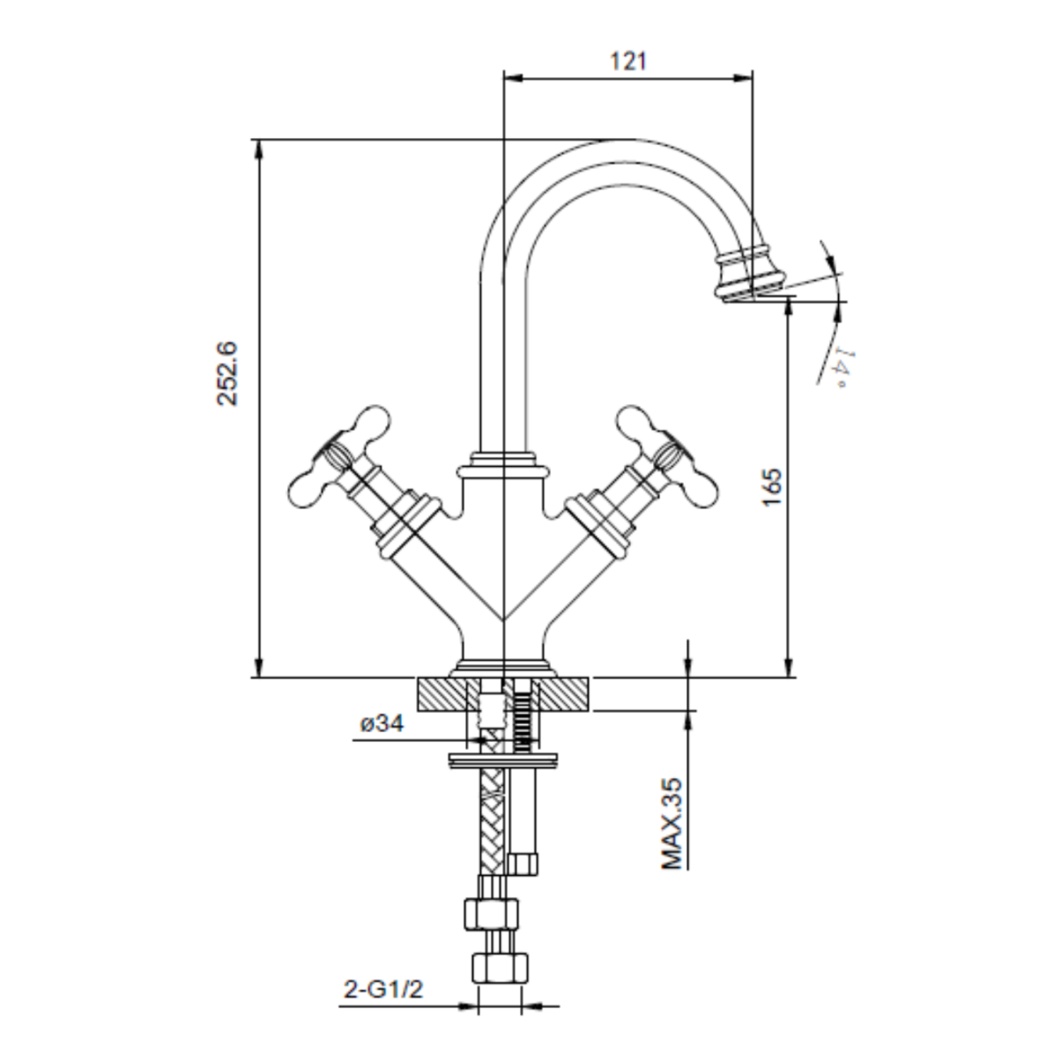 - Basin Tap Dimensions: H252.5 x W34 x D129 mm