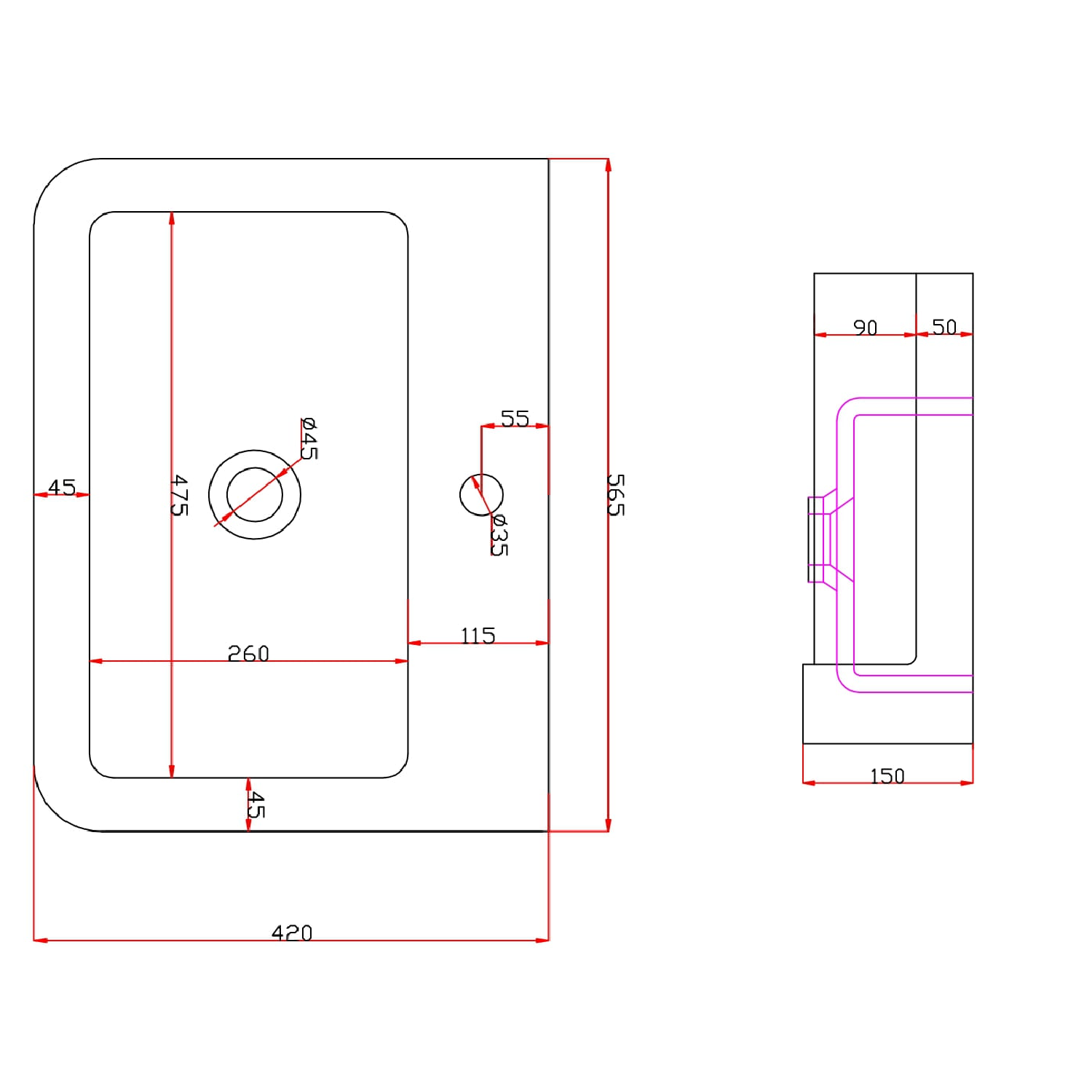 1 x Westbury Semi recess ceramic basin 565*420mm