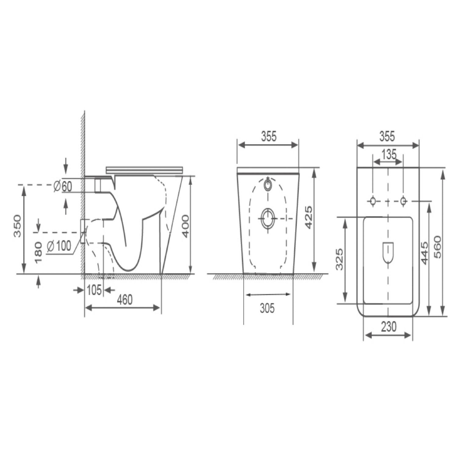 - Cistern Dimensions: W336mm x D140mm x H320mm