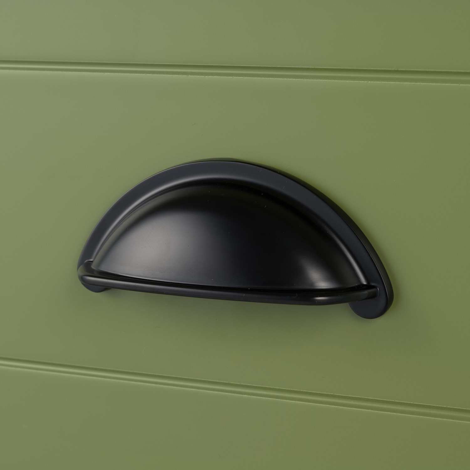 This timeless design will update your bathroom and be the perfect centrepiece with its matt olive green finish that contrasts beautifully with its wood effect top, and black cup pull handles. It has a traditional meets modern styling that will look great in any bathroom and the olive green helps brings the outside in, injecting a little colour into your room.