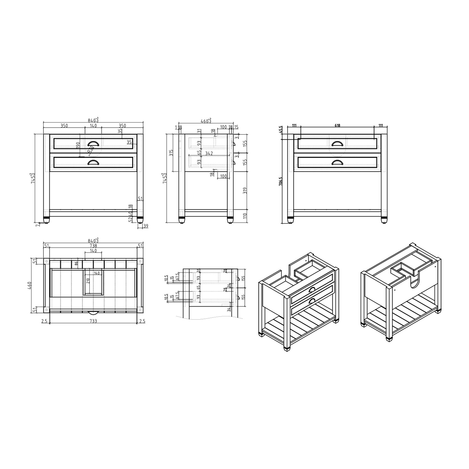- Unit dimensions: H745 x W840 x D460 mm (give or take -/+ 3mm per measurement)