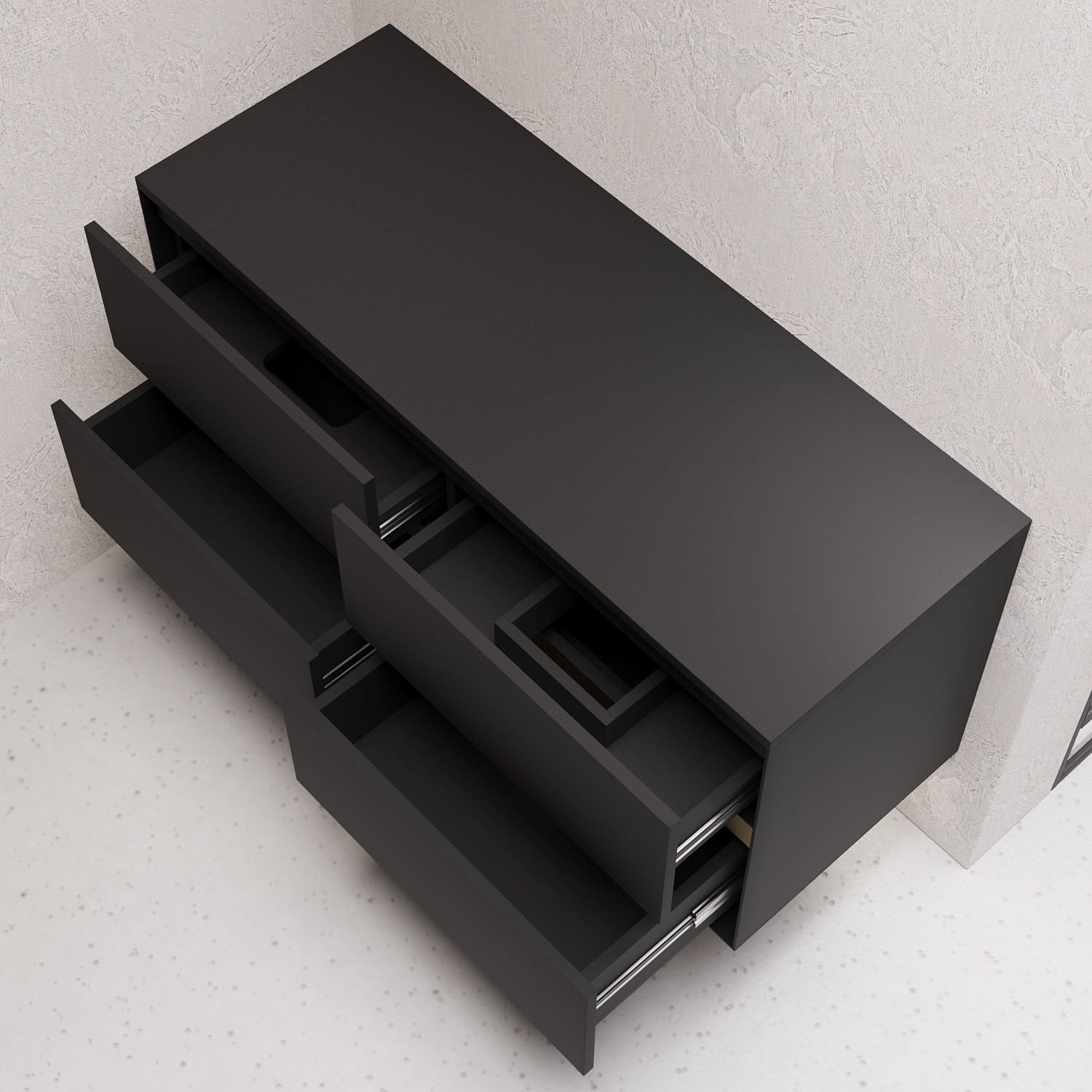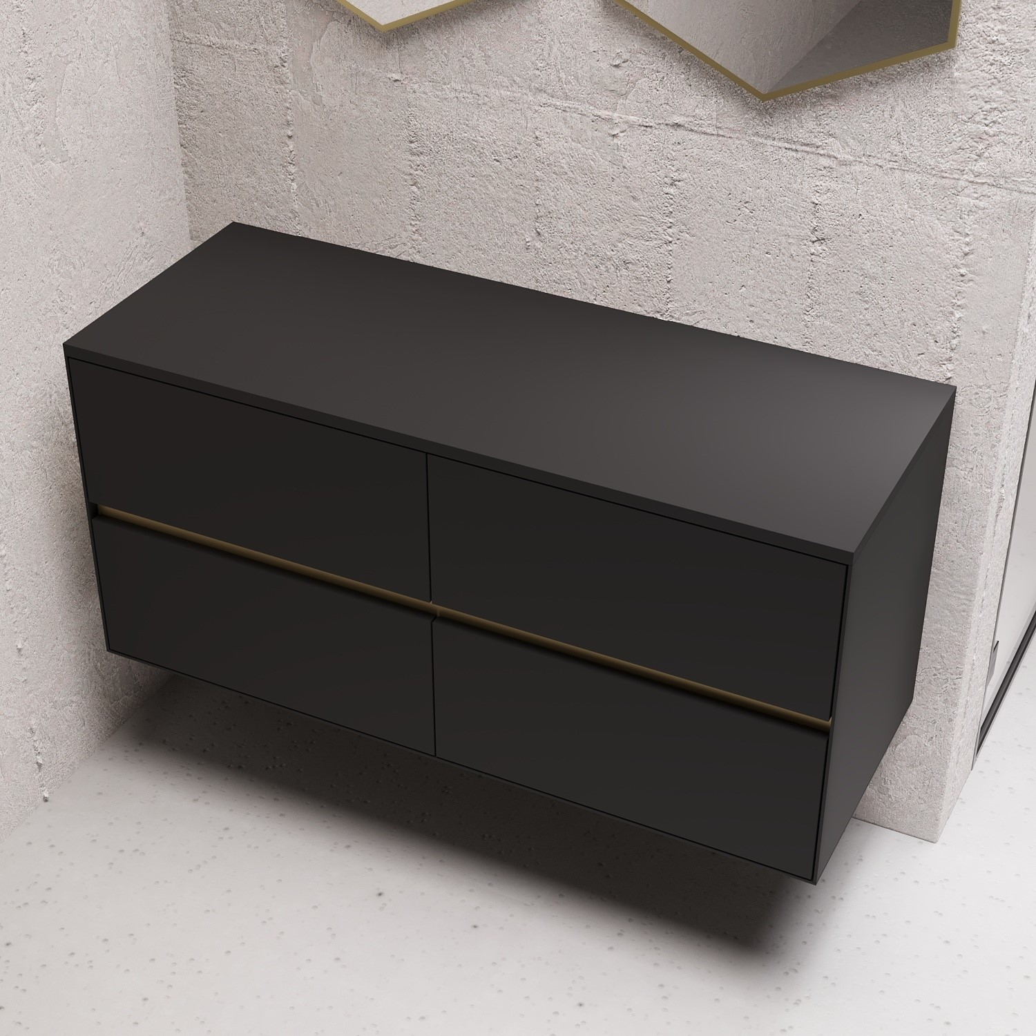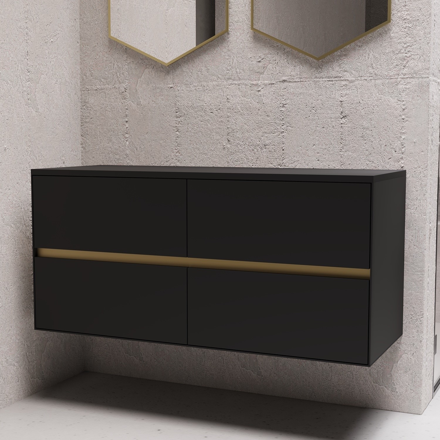 Get the look of a high-end boutique hotel with this stylish double basin vanity unit. With a minimalist handless opening and a matt black finish, it’ll add elegance to any bathroom. The basins and taps aren't included so simply add on your preferred style. No assembly is required, just secure your chosen basins, install your chosen taps and get to using it right away. This unit has no pre-drilled tap holes, but is suitable for drilling tap holes, giving you the freedom to choose a wall mounted or tall basin mixer tap.
