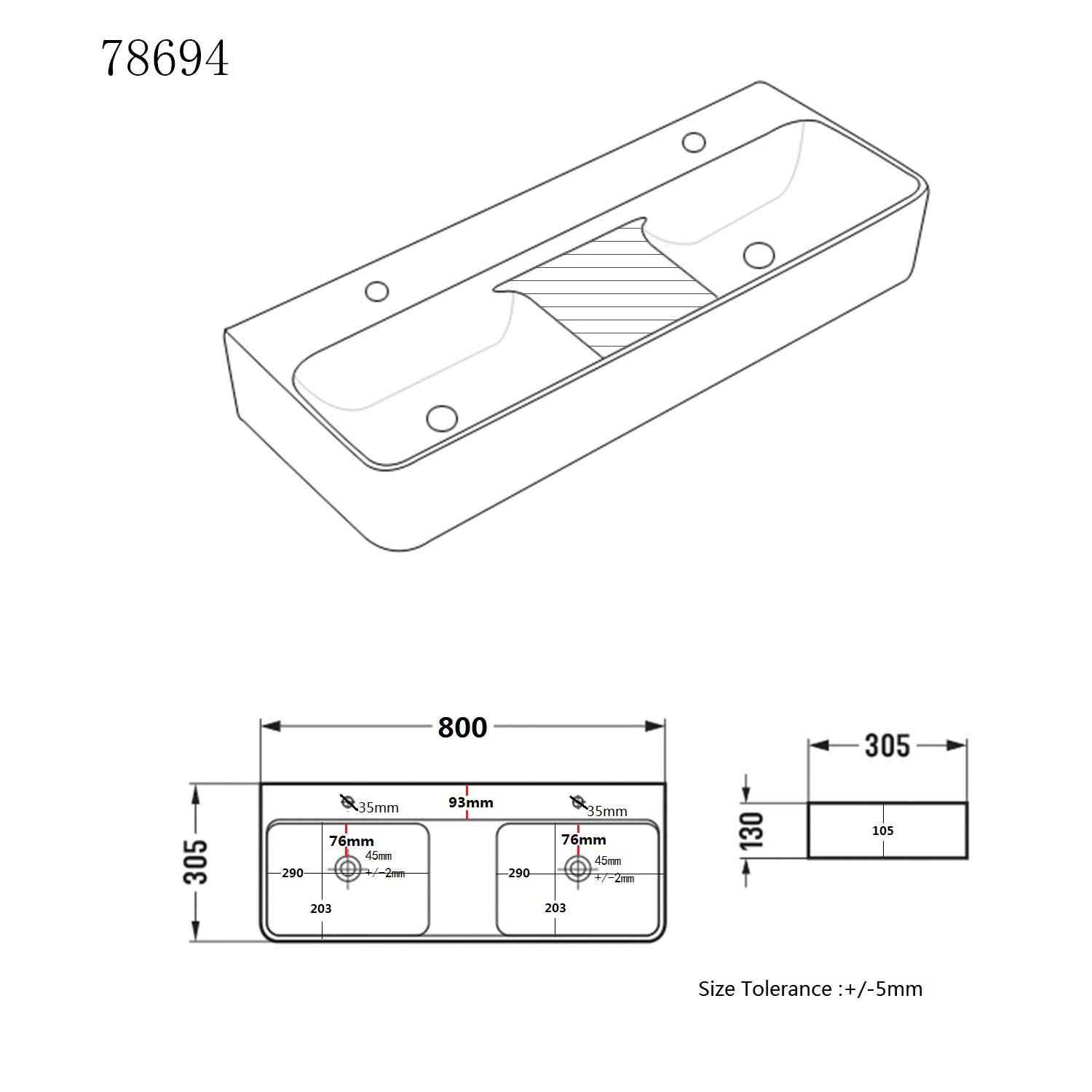 Complete the Look: The basins come with two tap holes, perfect for pairing with any of our recommended mono basin mixer taps, giving you flexibility in your choice of bathroom fittings.