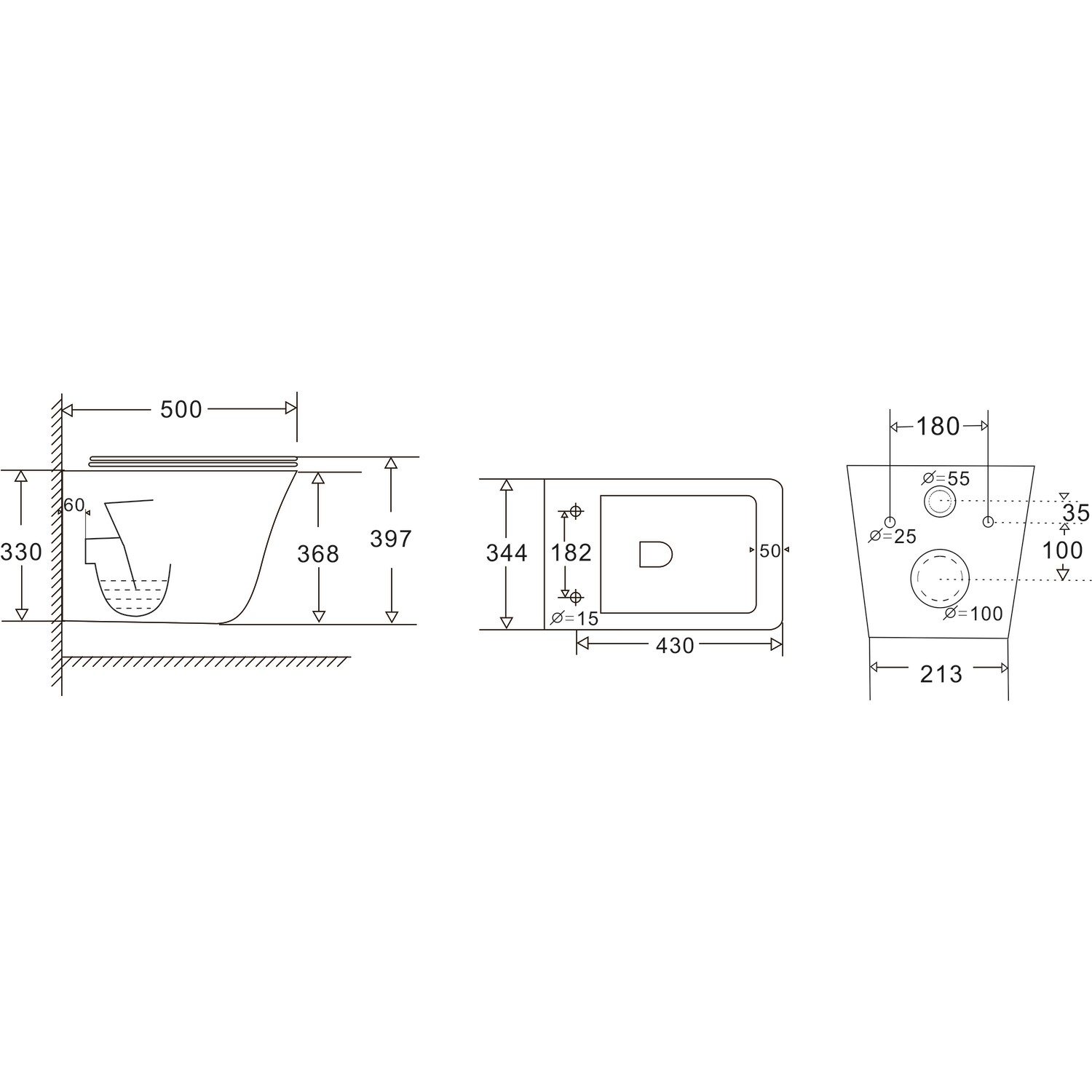 - Type: Wall-hung toilet