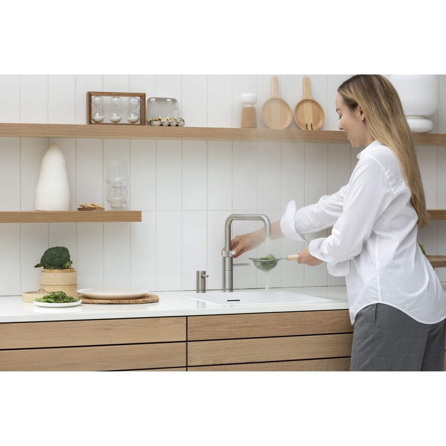 Quooker Fusion Instant Boiling Water Kitchen Tap - Stainless Steel Square Spout