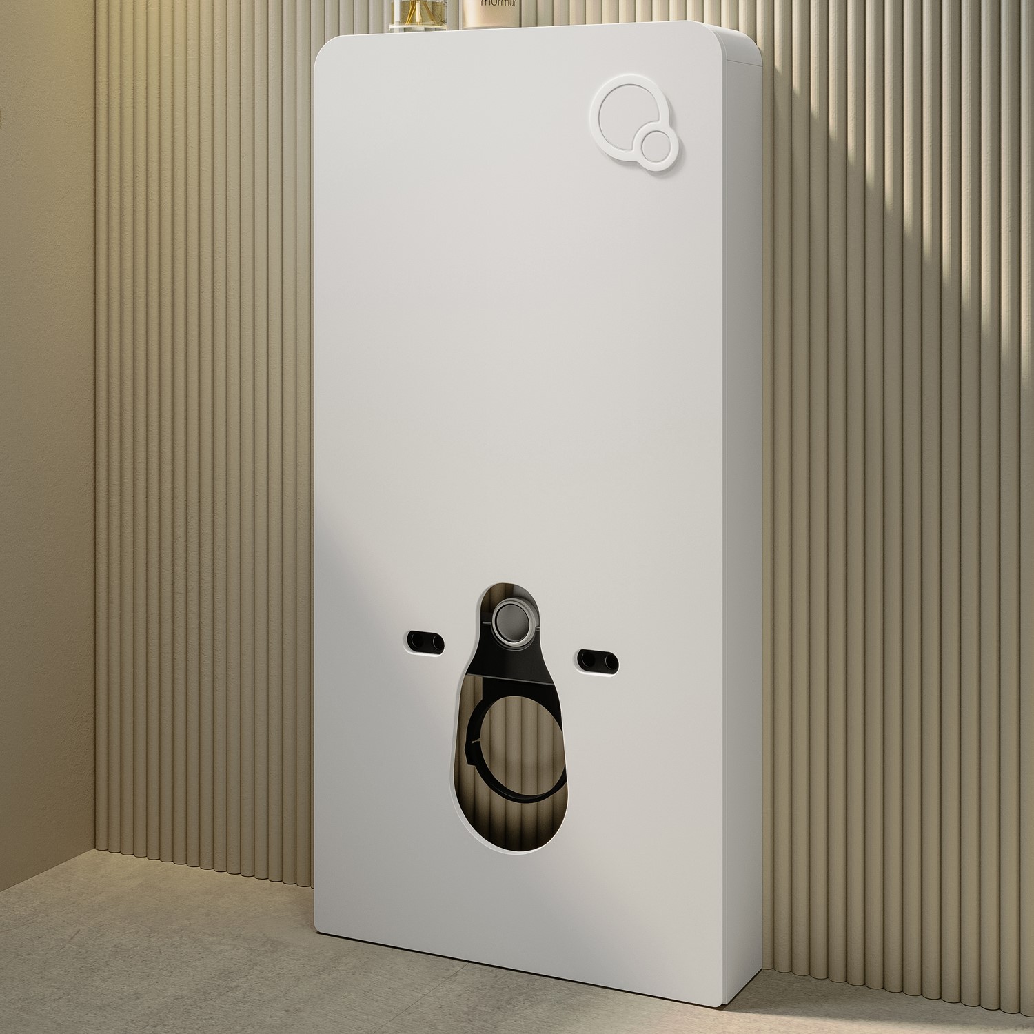 Hassle-free Installation: Our sophisticated concealed cabinet with built-in cistern comes with the round Purificare wall hung toilet. This allows easy retrofitting, no need to create stud walls or reroute hidden pipework, making it a quick and stylish solution for modern bathrooms.