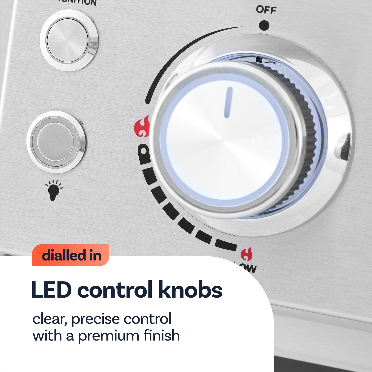 Evenly spaced, push-ignition burners operate individually, for complete control.