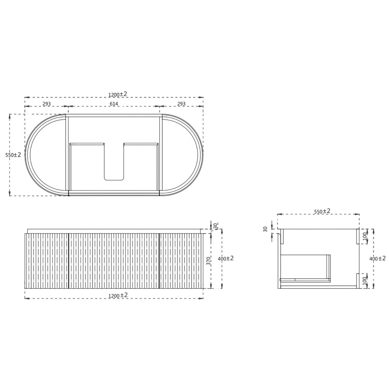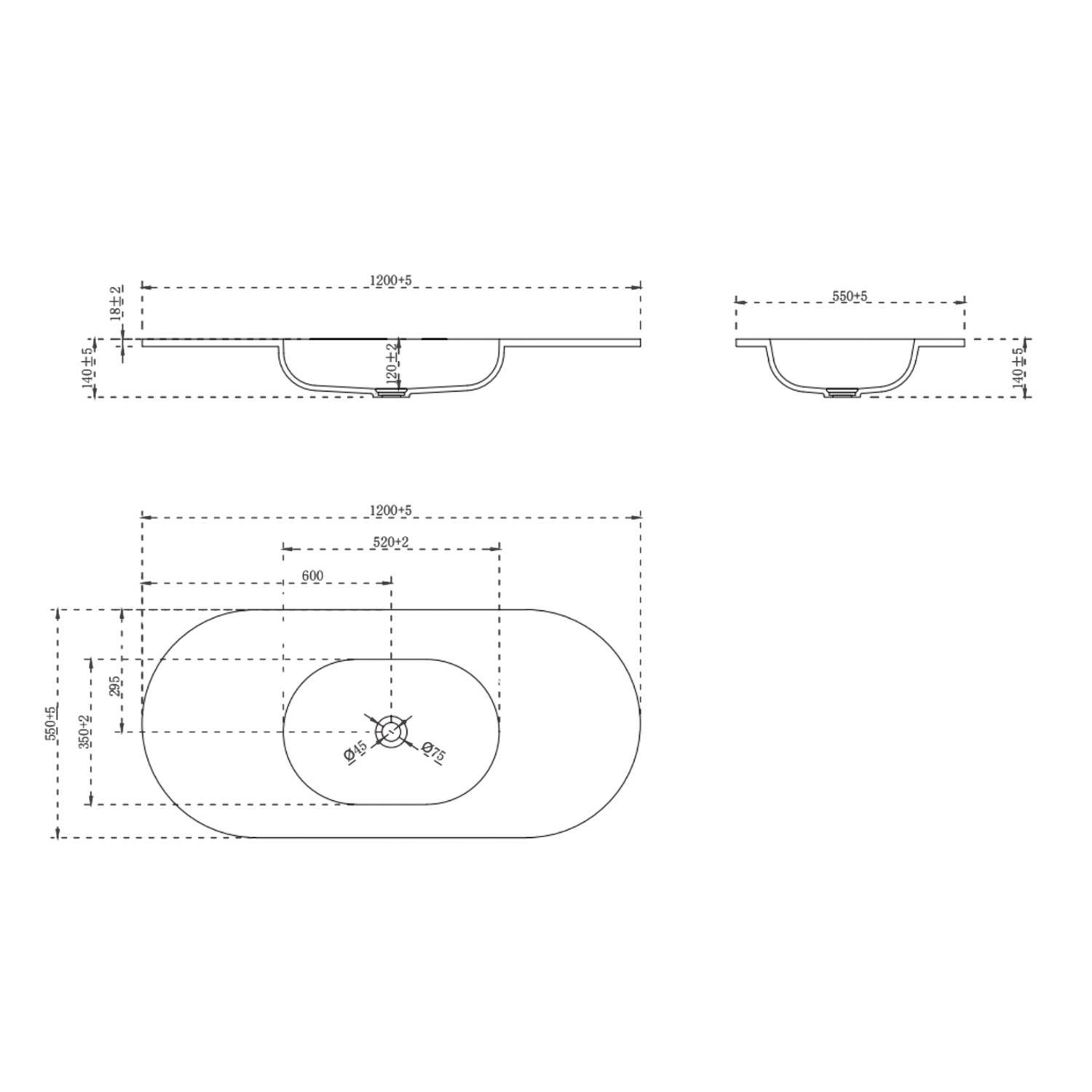 - Overall Basin Vanity Dimensions (including basin): H418mm x W1200mm x D550mm