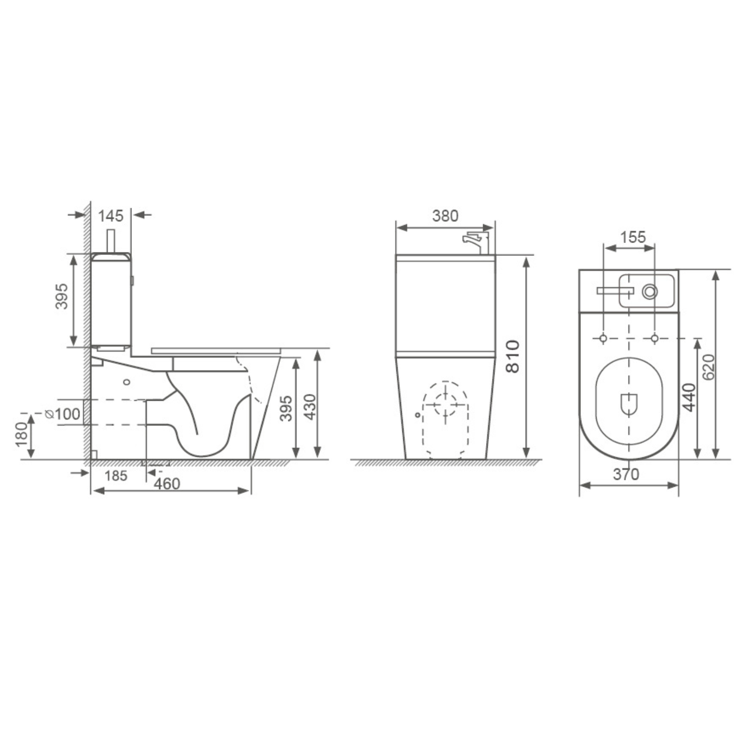 This toilet and sink combo is multifunctional, with water from the basin flowing into the cistern tank to be recycled for flushing, helping to conserve water and reduce your water bill. It includes a matt black cloakroom mixer tap, flush button, and cistern. It’s ideal for tight spaces and environmentally conscious households.