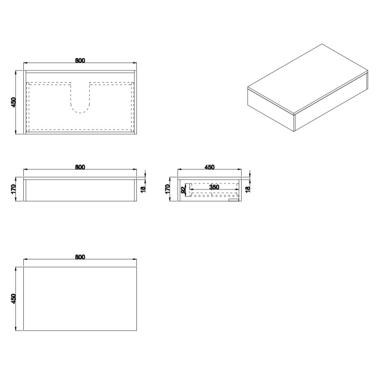 - Vanity Unit Dimensions: H170 x W800 x D450 mm (give or take -/+ 3mm per measurement)