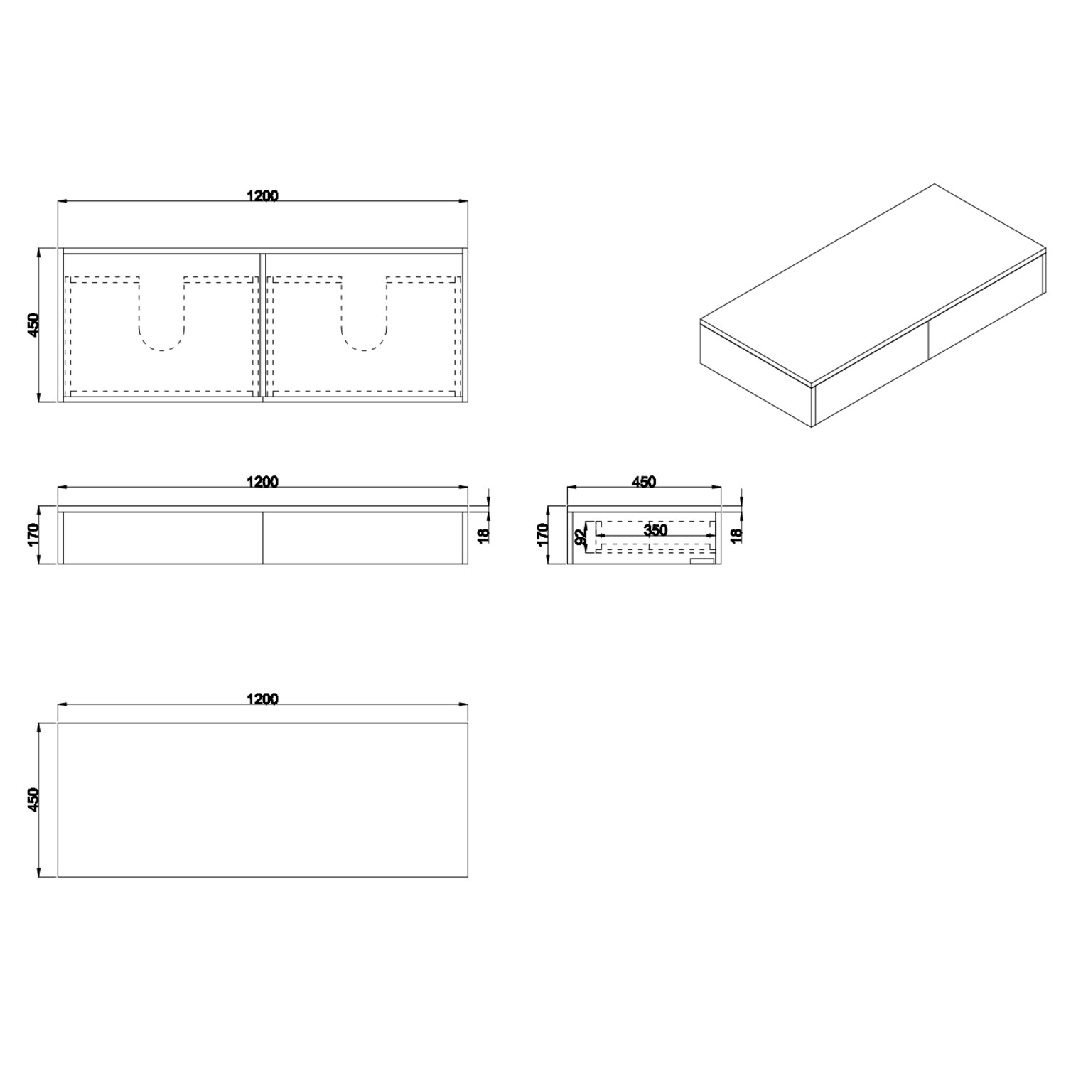 - Vanity Unit Dimensions: H170 x W1200 x D450 mm (give or take -/+ 3mm per measurement)