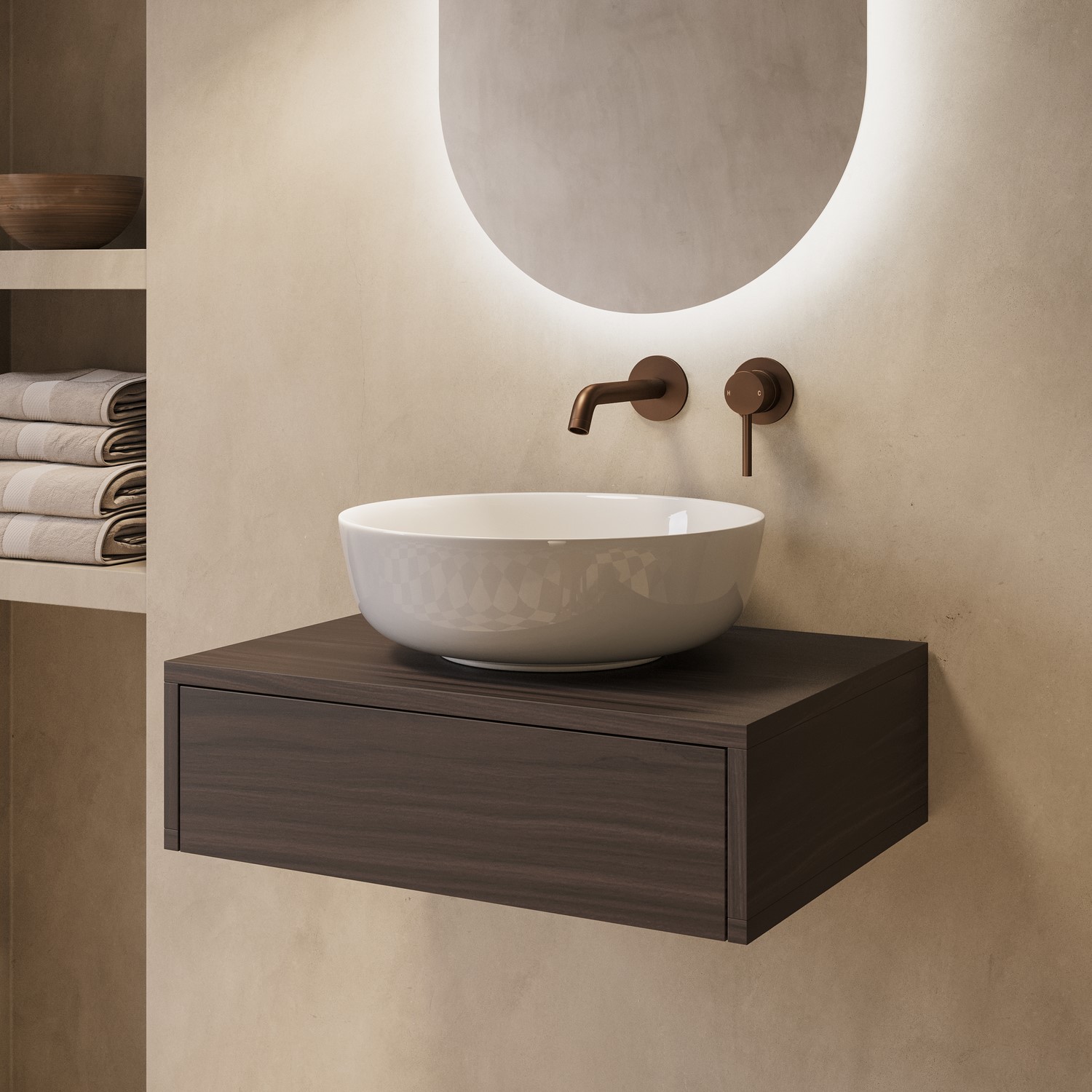 Warm Walnut Finish: The rich dark wood effect adds warmth and character, blending beautifully with modern and natural bathroom interiors.
