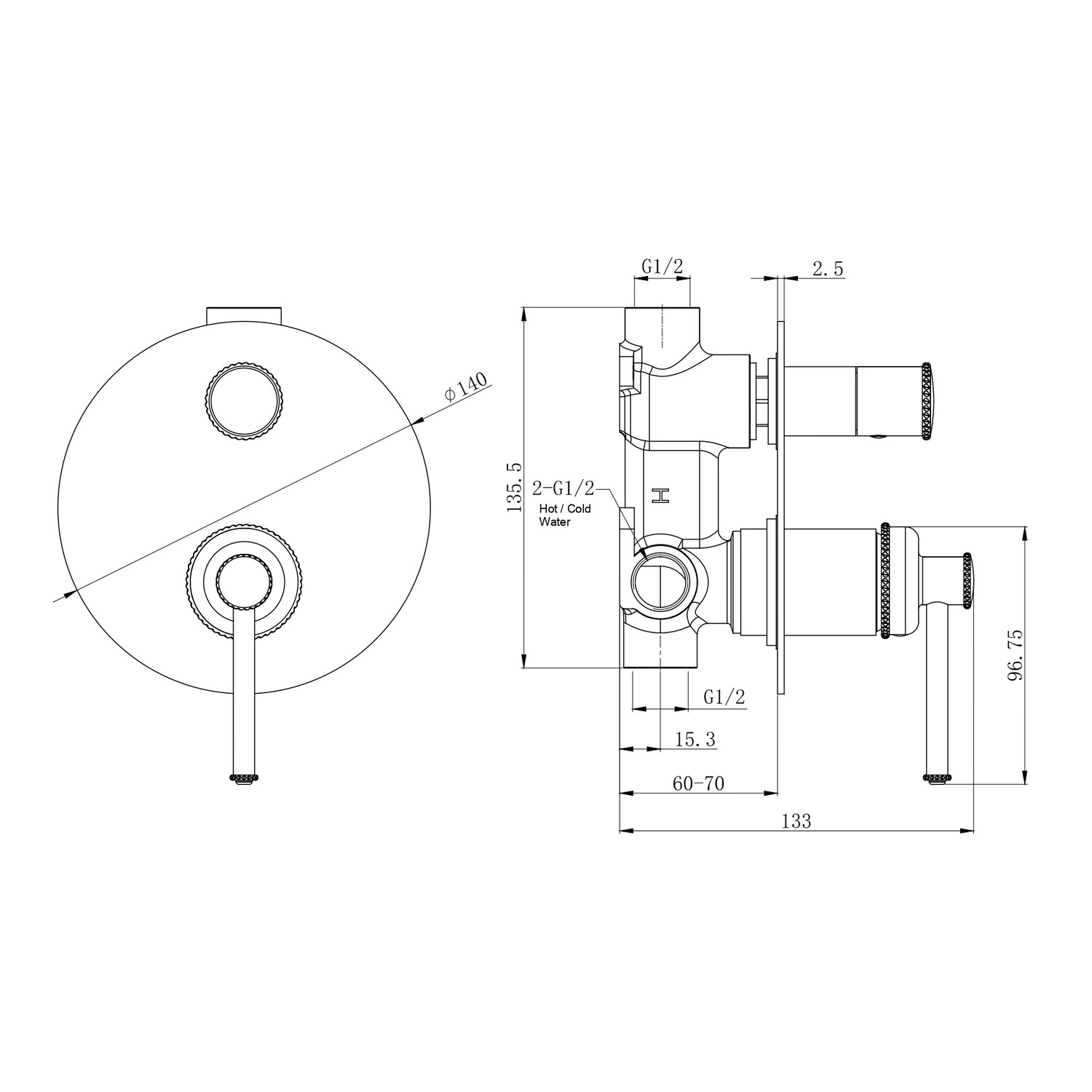 Dual Outlet Concealed Shower: This two-outlet shower contains a wall-mounted shower head with arm, shower hose, and matching concealed valve. Use the lever to mix hot and cold water for your perfect temperature.