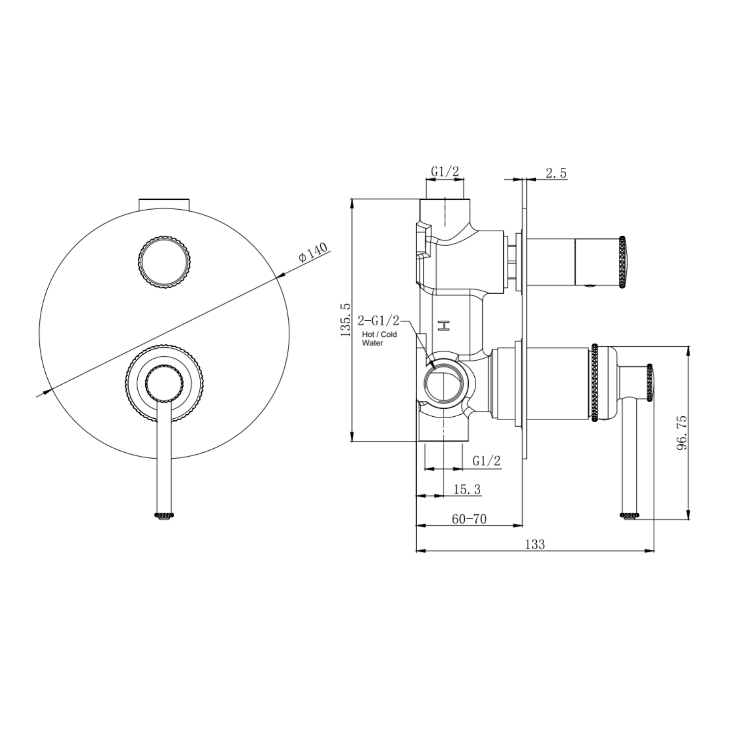 The 2 outlet shower valve features dual controls that allow you to easily adjust temperature and water flow, while giving you the flexibility to operate two outlets.