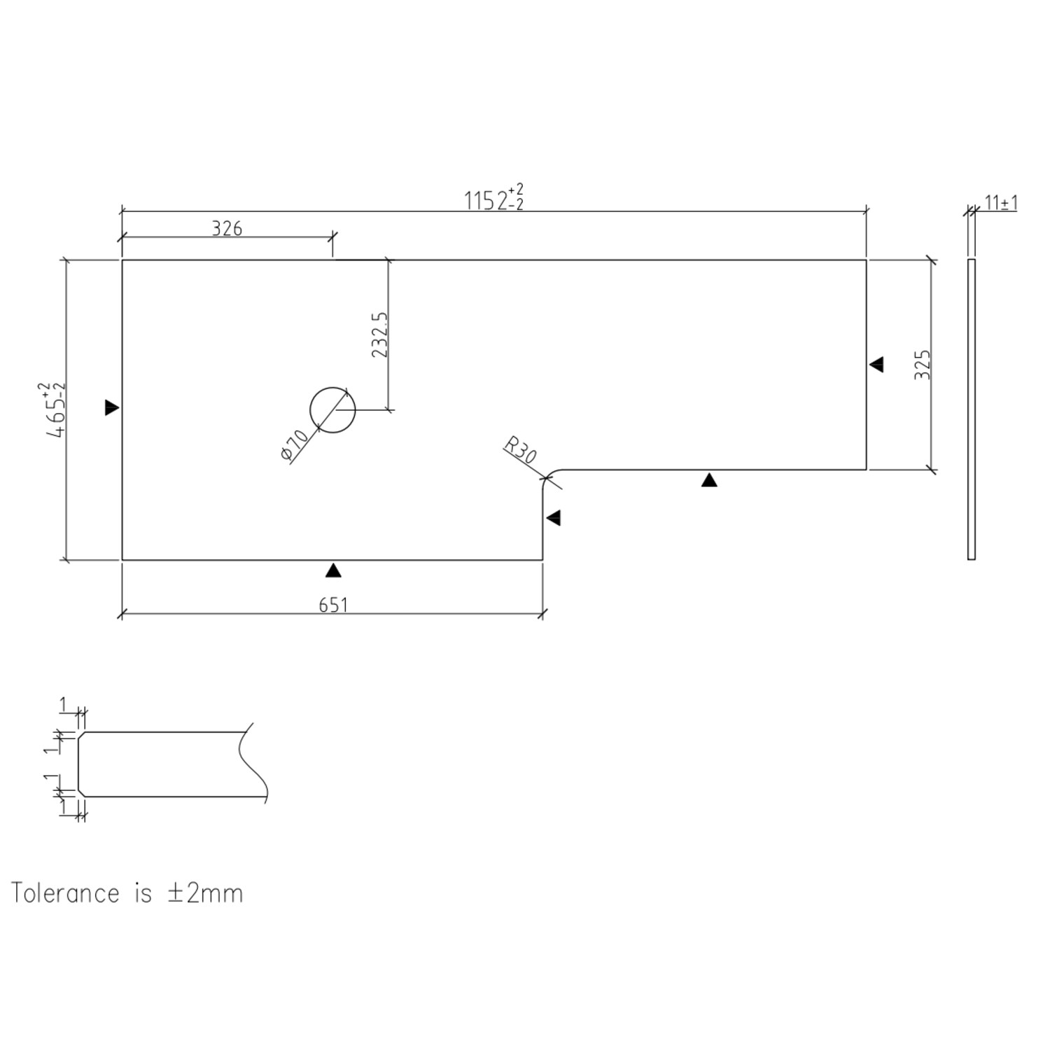 - Overall Dimensions: W 1152 × D 465 × H 811 mm (Please note the main footprint of this unit is W 1139 x D 460mm – however the worktop has a small overhang to slightly increase the overall dimensions)