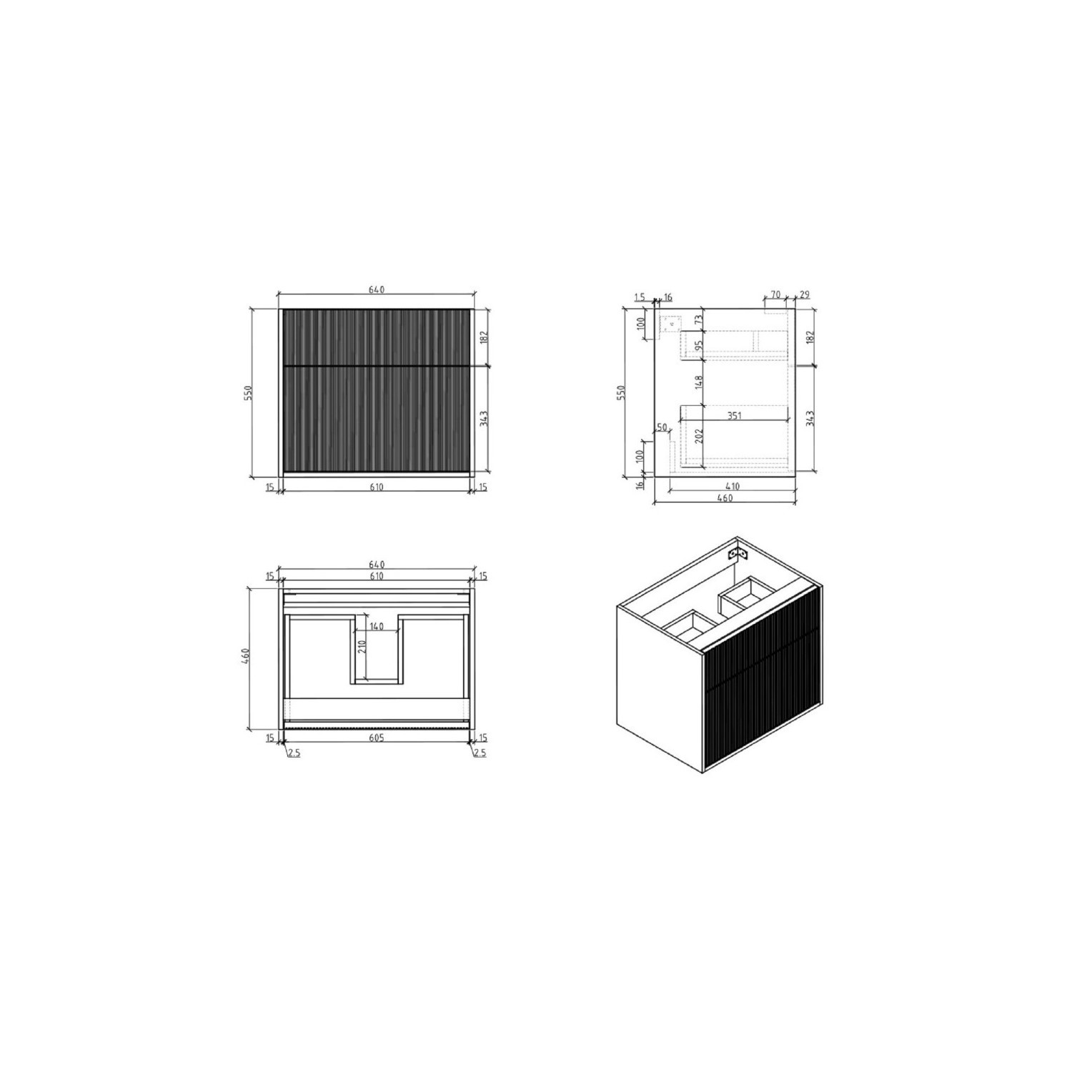 - Vanity Unit Dimensions:W650 x D465 x H562mm - Please Note, the width of this worktop measures 650mm due to a 10mm overhang, however the main unit width is 640mm. The depth of this worktop measures 465mm due to 5mm overhang, however the main unit depth is 460mm.