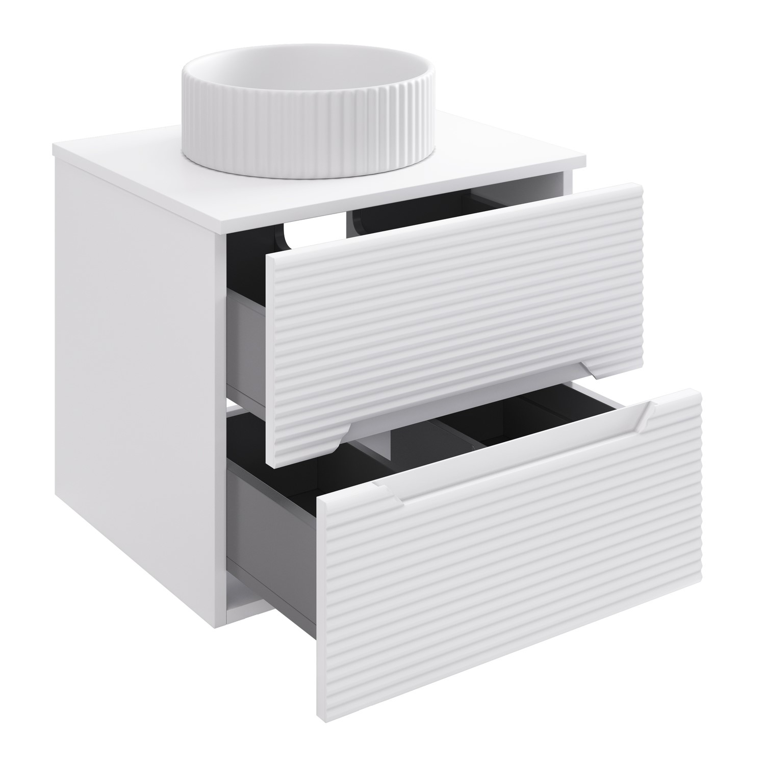 Matching Basin Included: Comes with a matching fluted countertop basin in a sleek white gloss finish.