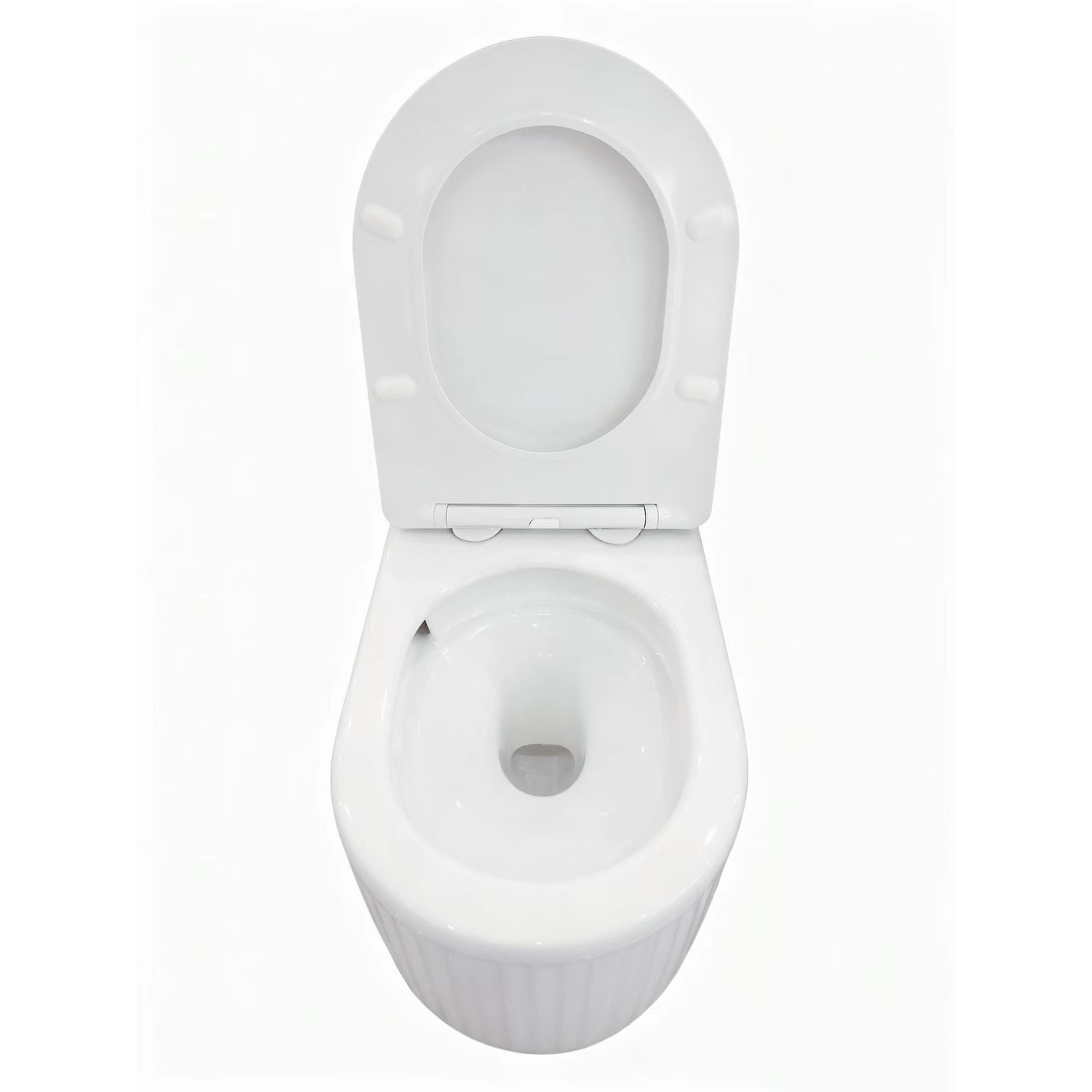 Contemporary Wall-Hung Design: The sleek Oregon Wall Hung Toilet in gloss white adds modern style and space-saving functionality to your bathroom. The elegant fluted detailing enhances the design, creating a luxurious look. With a depth of 520mm, it’s perfect for compact spaces. The seat has matching white hinges, making it easy to coordinate with your bathroom theme.