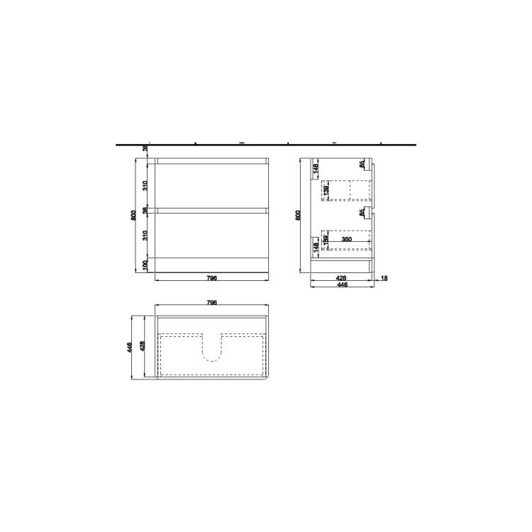 - Dimensions: H800 x W800 x D450mm