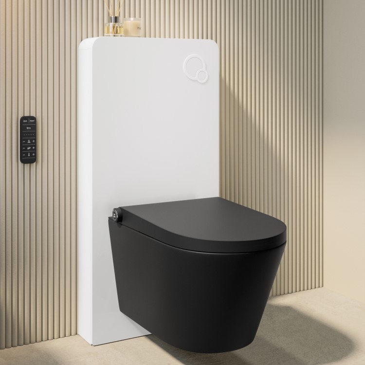 Hassle-free Installation: Our sophisticated concealed cabinet with built-in cistern comes with the round Purificare intelligent wall hung toilet. This allows easy retrofitting, no need to create stud walls or reroute hidden pipework, making it a quick and stylish solution for modern bathrooms.