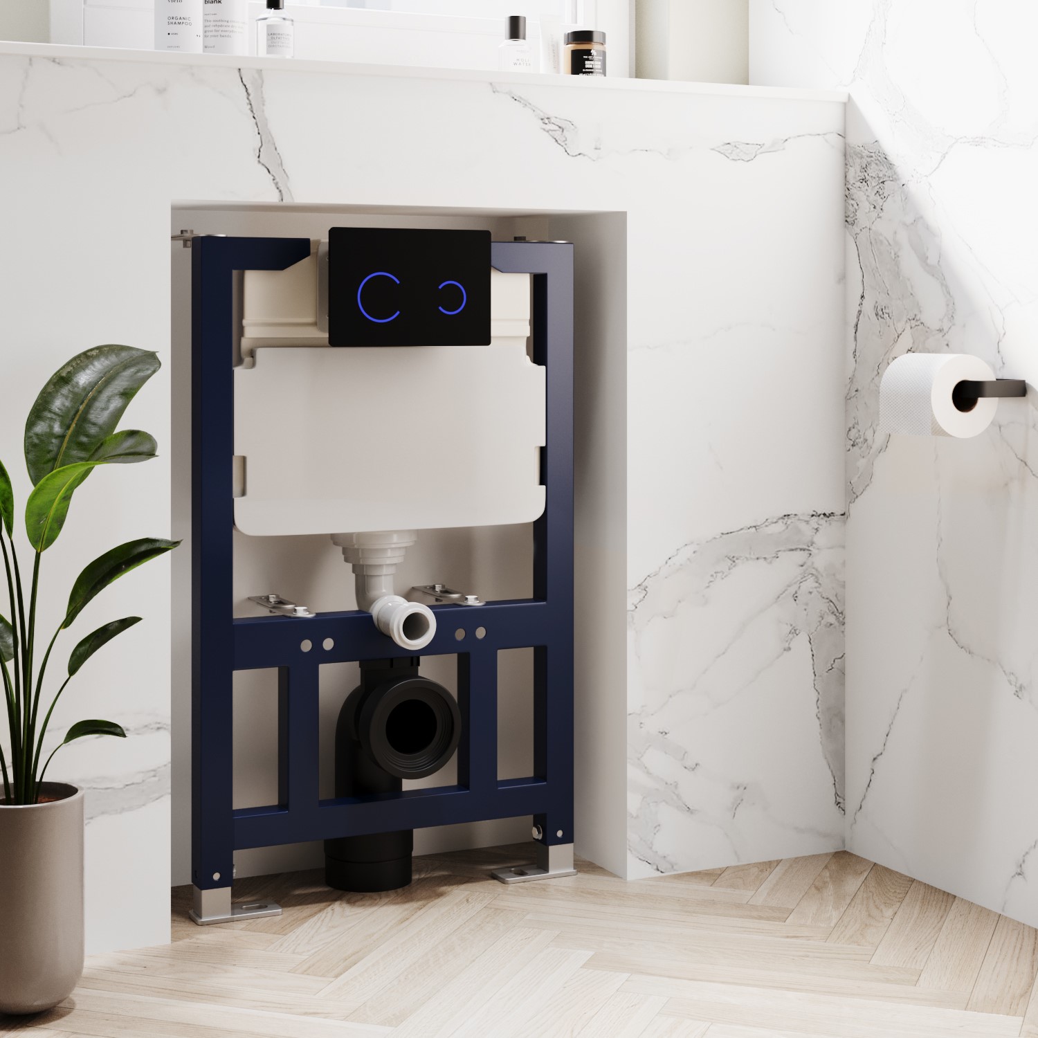 Wall Hung, Space-Saving Design: The wall hung frame which is included creates a sleek, floating appearance while concealing pipework and freeing up floor space—ideal for modern bathrooms and effortless cleaning.
