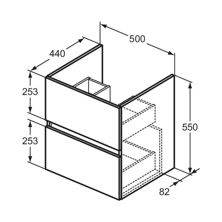 Enhance your bathroom with the modern Eurovit+ 500mm wall hung vanity unit from Ideal Standard, finished in a fresh white gloss. This vanity unit makes brilliant use of small spaces with its 500mm width whilst providing essential storage, making it perfect for en-suites or cloakrooms. The wall mounted installation opens up your floor space, giving the illusion of more space and making floor cleaning a breeze. The two soft close drawers make it easy to store your toiletries and cleaning products, and the fresh white gloss finish instantly brightens your room and is easy to wipe down and maintain. The unit also features a minimalist handle-free design giving a sleek, modern look with concealed handles for clean lines and a clutter-free finish. Crafted from PEFC-certified wood, the Eurovit+ collection aligns with Ideal Standard’s commitment to sustainability and eco-friendly product development, meaning the vanity unit is crafted with wood from forests managed sustainably, balancing environmental, social, and economic needs.