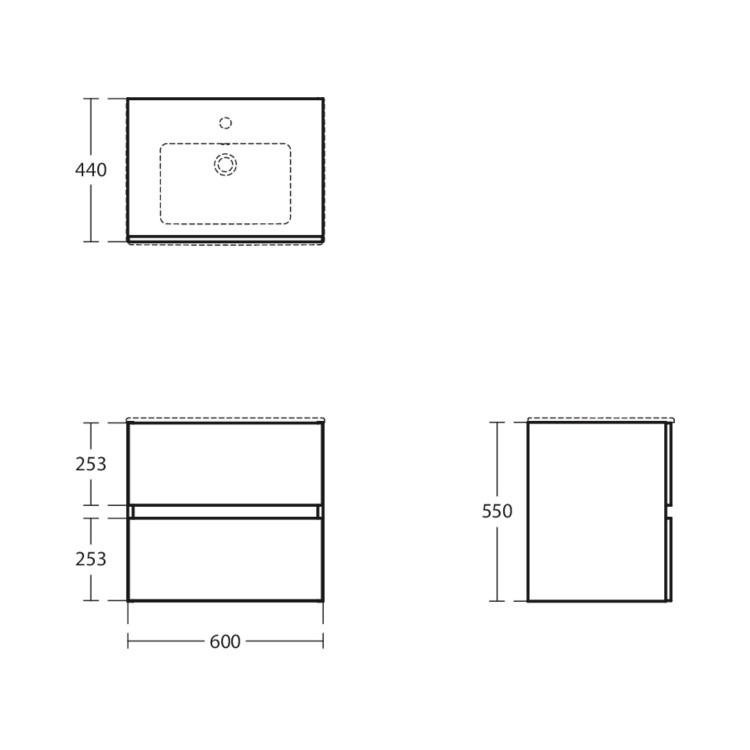 - Overall Basin Vanity Dimensions (including basin): H565mm x W610mm x D450mm