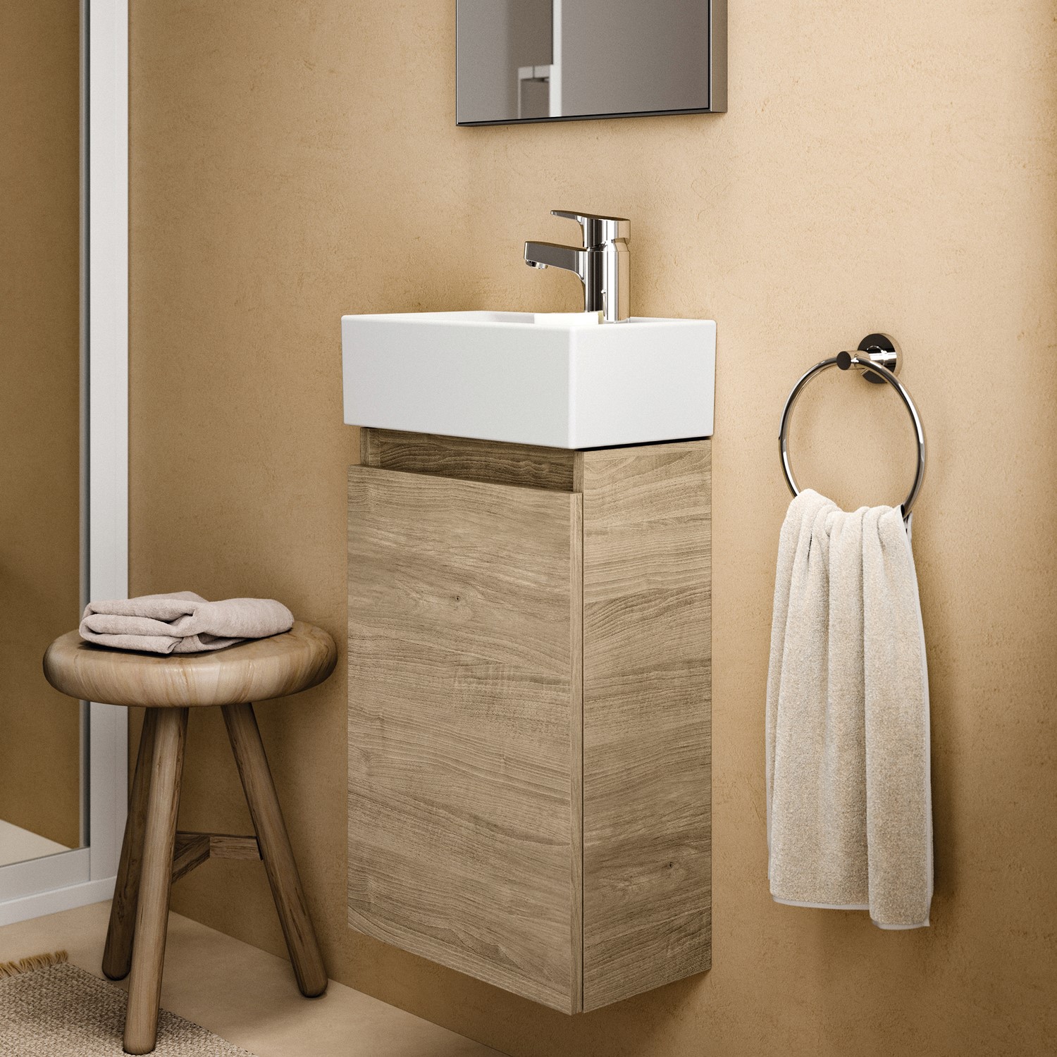 Oak Effect Finish: Instantly warms your bathroom and is complimentary of a range of brassware finishes, to match your chosen cloakroom mixer tap of choice.