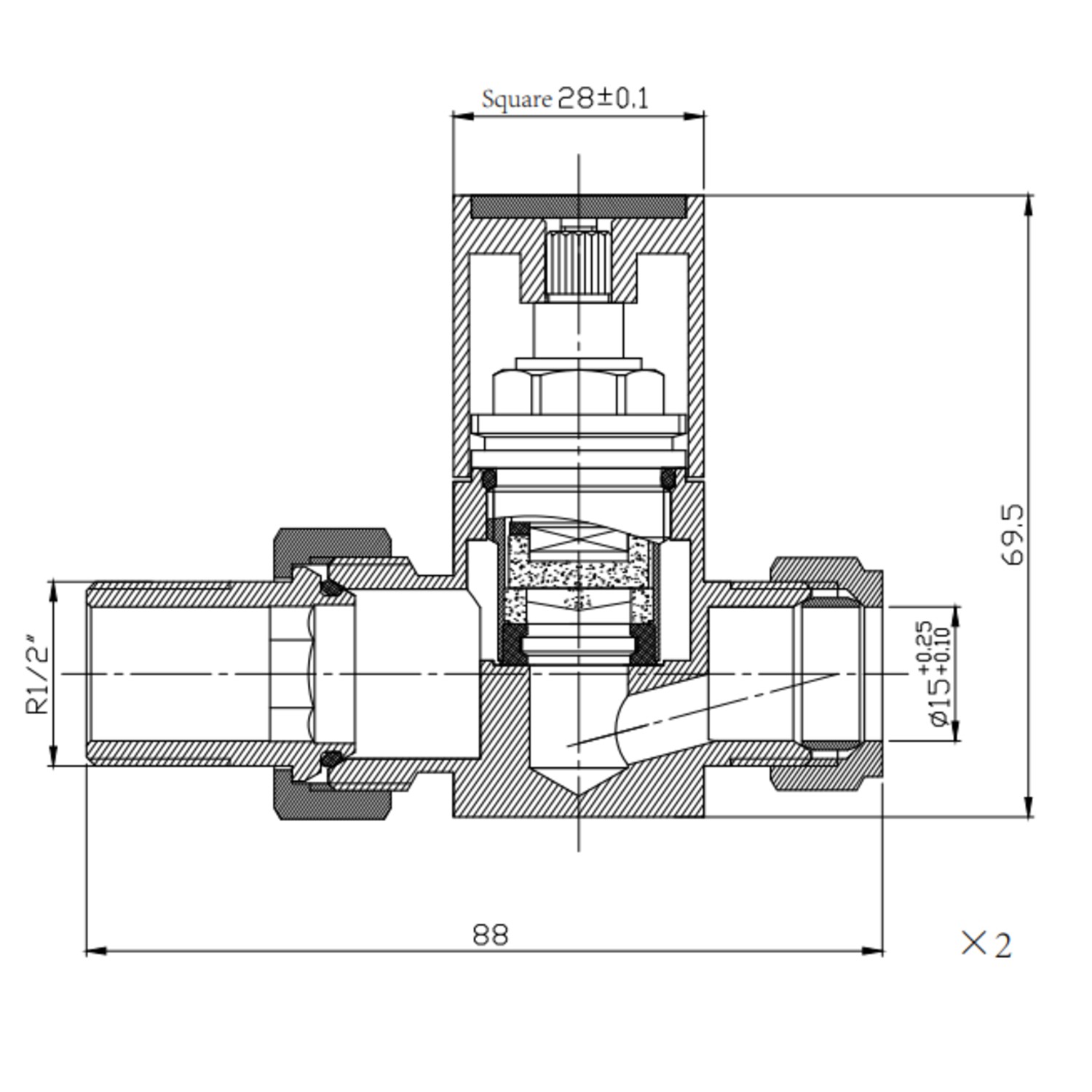 - Radiator Valve Dimensions: H71mm x W85mm x D85mm