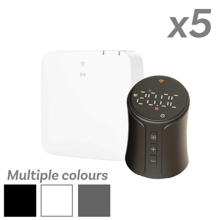 electriQ Smart TRV Valves (Pack of 5 Valves) with Zigbee Hub - 1 x Black / 2 x White / 2 x Anthracite