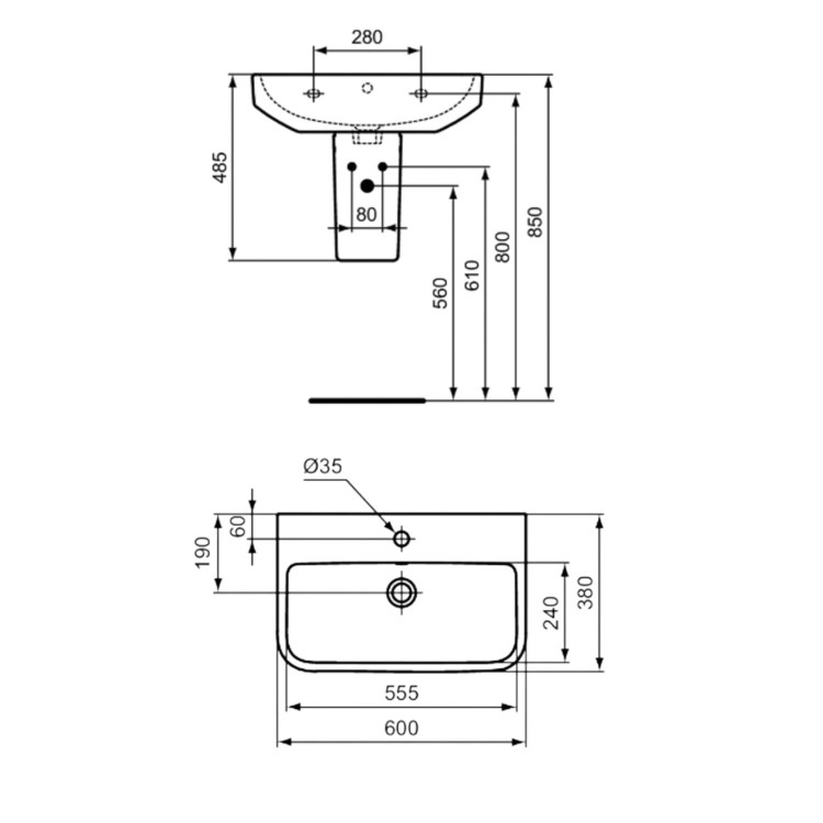 Enhance your bathroom with the i.Life S Compact 600mm Semi Pedestal Basin from Ideal Standard. Combining modern rectangular curves with a practical semi pedestal that conceals unsightly pipework whilst still giving the illusion of open floorspace, this space-saving sink is designed for both beauty and function. The basin design features a shorter 380mm depth making this sink perfect for compact or smaller spaces, such as cloakrooms or en-suites. Featuring one central tap hole, it's ideal for a mono basin mixer tap of your choice. The overflow is coverless meaning you can pair this basin with brassware in any finish. Crafted from high-quality ceramic and finished with a glossy enamel coating, it’s built to stand the test of time while adding a fresh, contemporary touch to your bathroom, is easy to clean and maintain whilst being backed with Ideal Standard's lifetime guarantee for peace of mind.