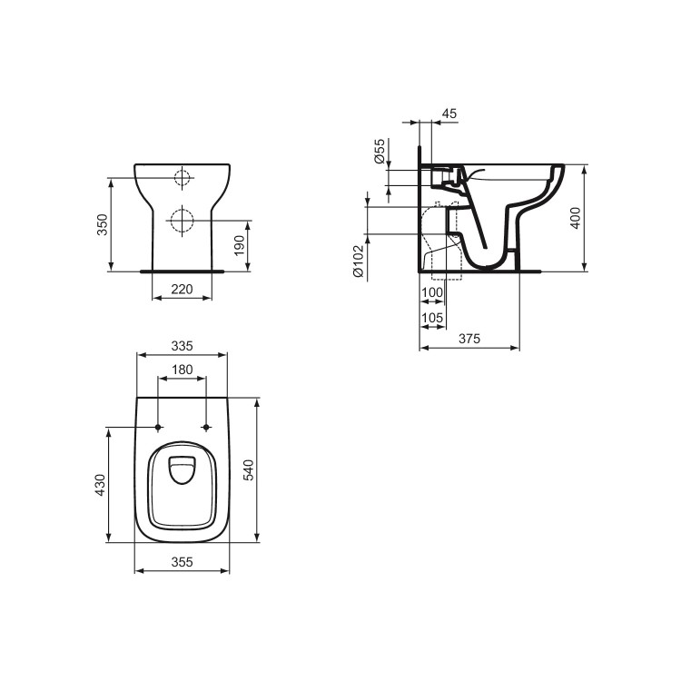 Ideal Standard i.life Back to Wall Design: Conceals all unsightly pipework and cistern for a sleek, minimalist finish and easier cleaning.