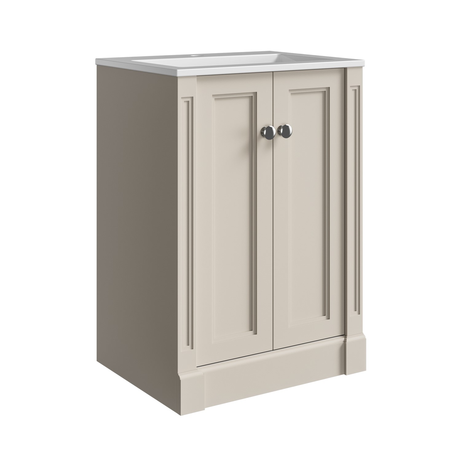 Classic meets clever with the Windsor 600mm freestanding vanity unit with basin. Designed for compact spaces, this freestanding unit blends traditional shaker-style detailing with hidden, modern functionality. Behind the soft closing doors, you will find a hidden internal drawer perfect for organising smaller essentials. This vanity provides optimal storage while maintaining a clean, classic look. Durable and stylish, it’s this Windsor vanity unit is the perfect centrepiece for bathroom renovations.