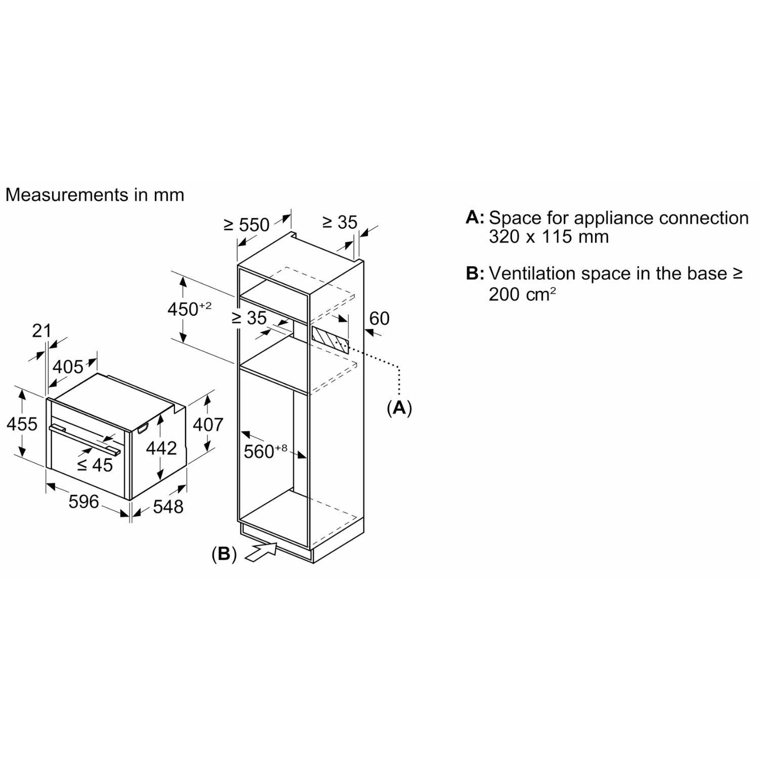 - Niche dimension (hxwxd): 450 mm - 455 mm x 560 mm - 568 mm x 550 mm
