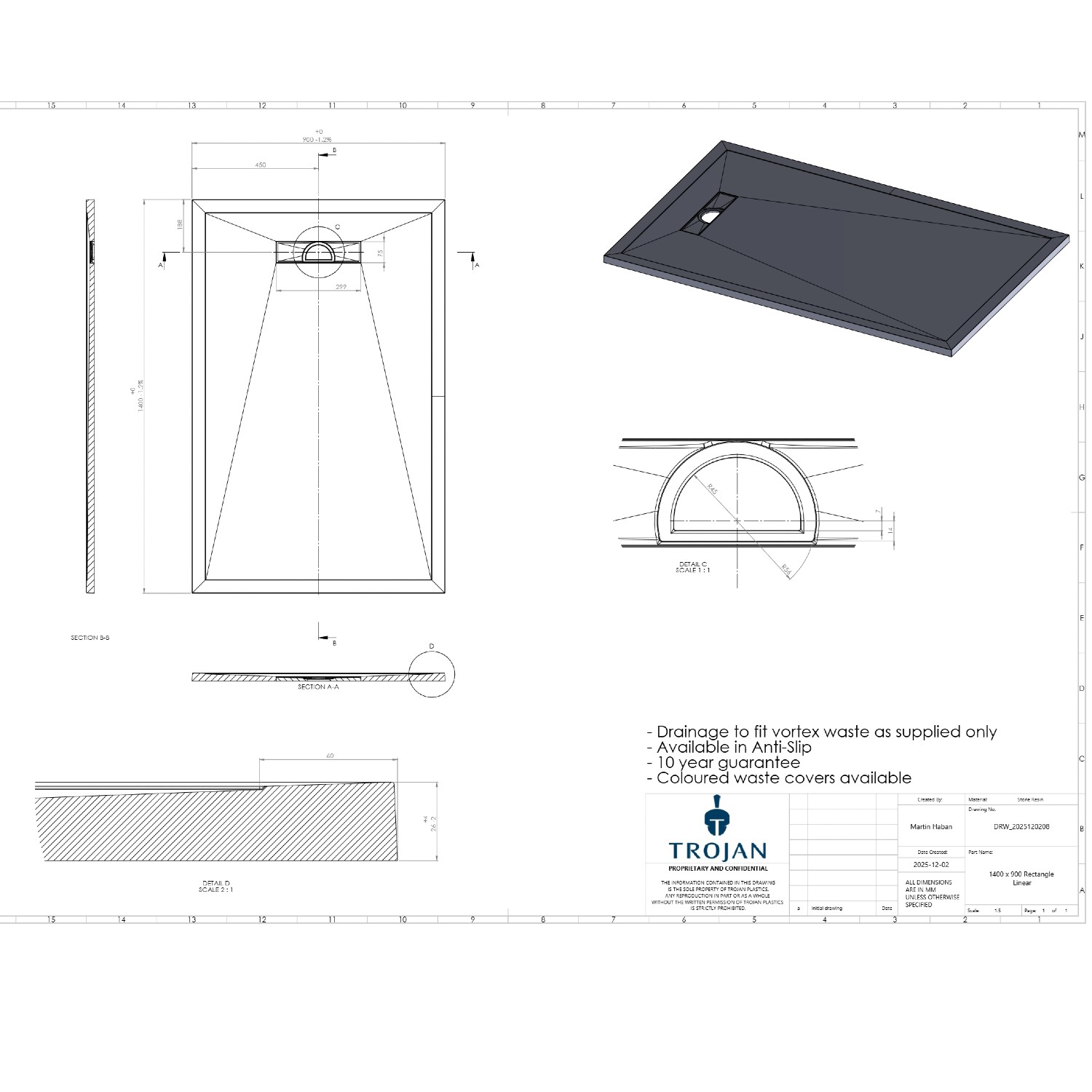 - Product size: 1400x900mm (Width x Depth)
