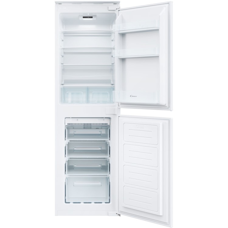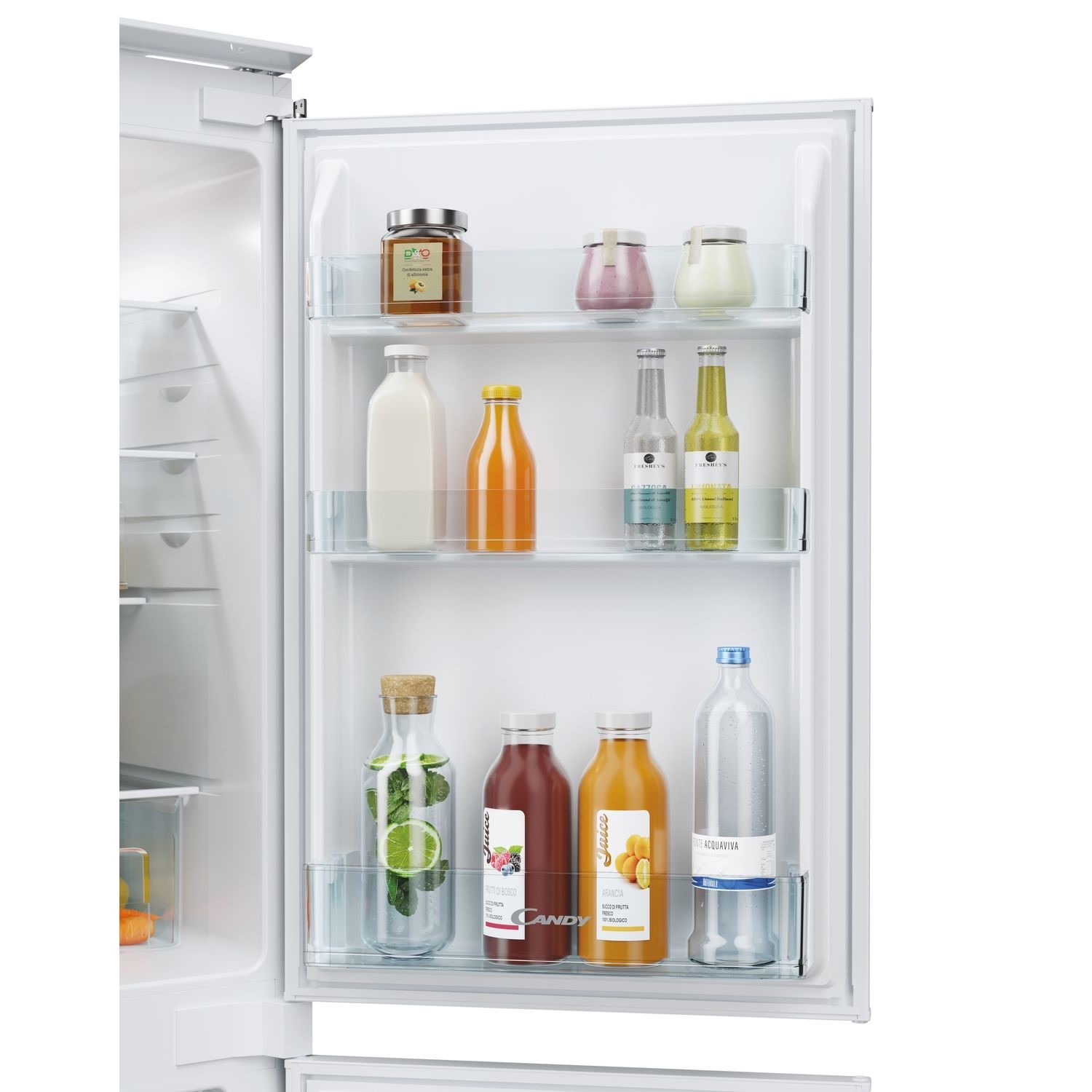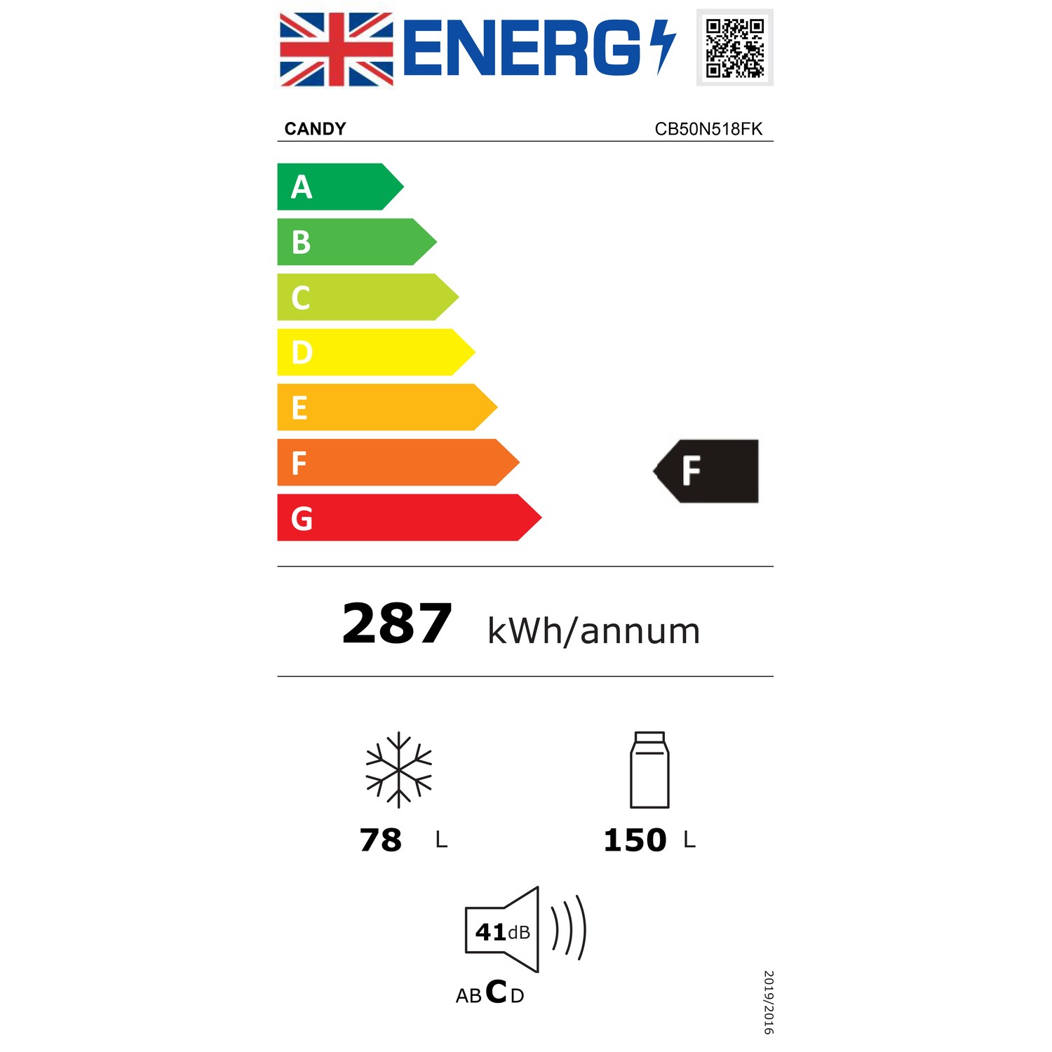 Versatile with large storage space. The Candy CB50N518FK has plenty of room for even the largest of families. The ability to change the form factor of the shelves you can fit virtually any food item in with ease. With the F rated energy efficiency its also kind on the pocket.