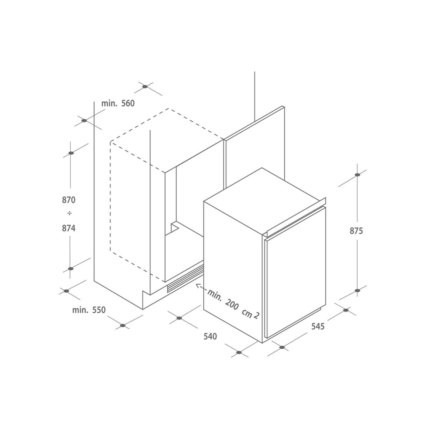 This integrated larder fridge is designed to be built into a tall housing kitchen unit at eye level, so that you can easily reach your food without having to bend down, and it doesn’t take up any floor space. Please measure the dimensions carefully before ordering: